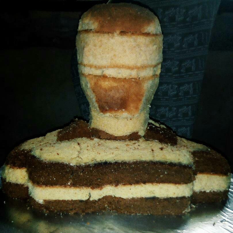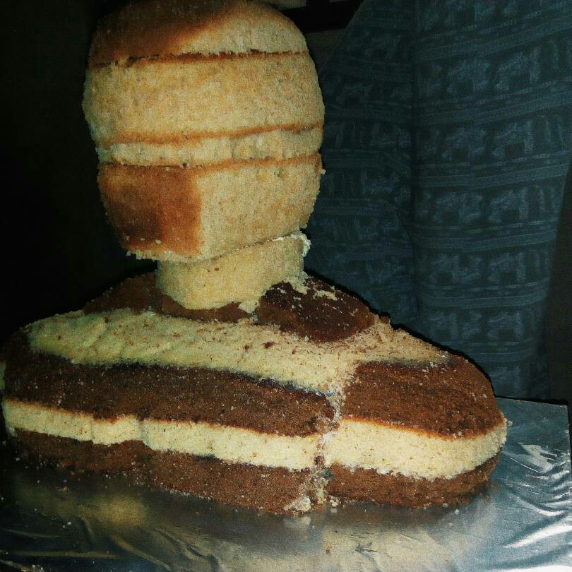 Day 2; I began sculpt.. It wasn't really easy though but I went ahead.. My people saw it like I was wasting the cake but to me, I just wanted to see something that looks like a human body, lol.