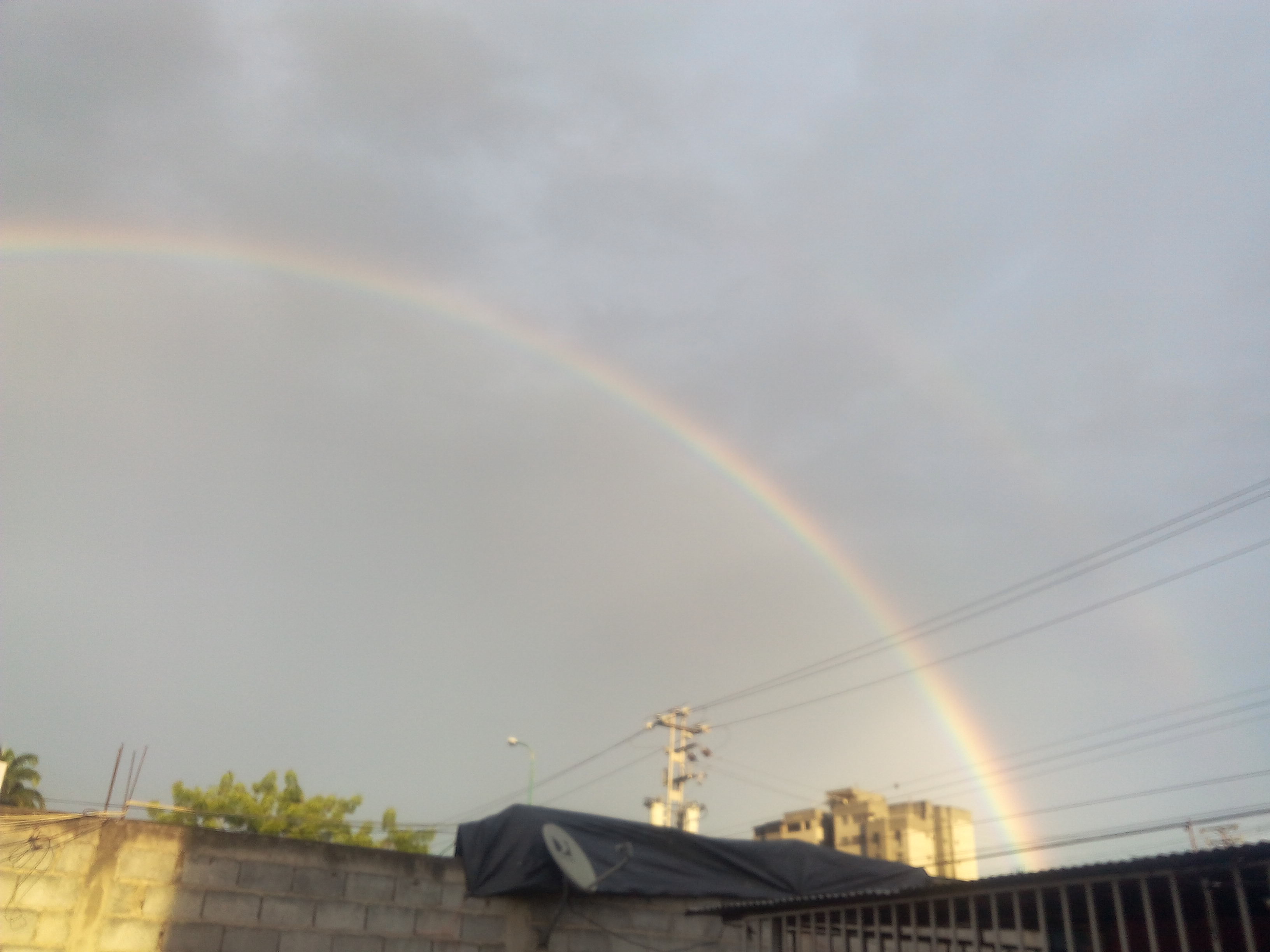 Hola, buenos días, tardes, noches amigos steemians. Hace un par de días tomé unas fotos de la ciudad donde vivo, luego de un día lluvioso aparece un paisaje muy colorido, junto a un arcoiris doble y un cielo nublado con un resplandor.