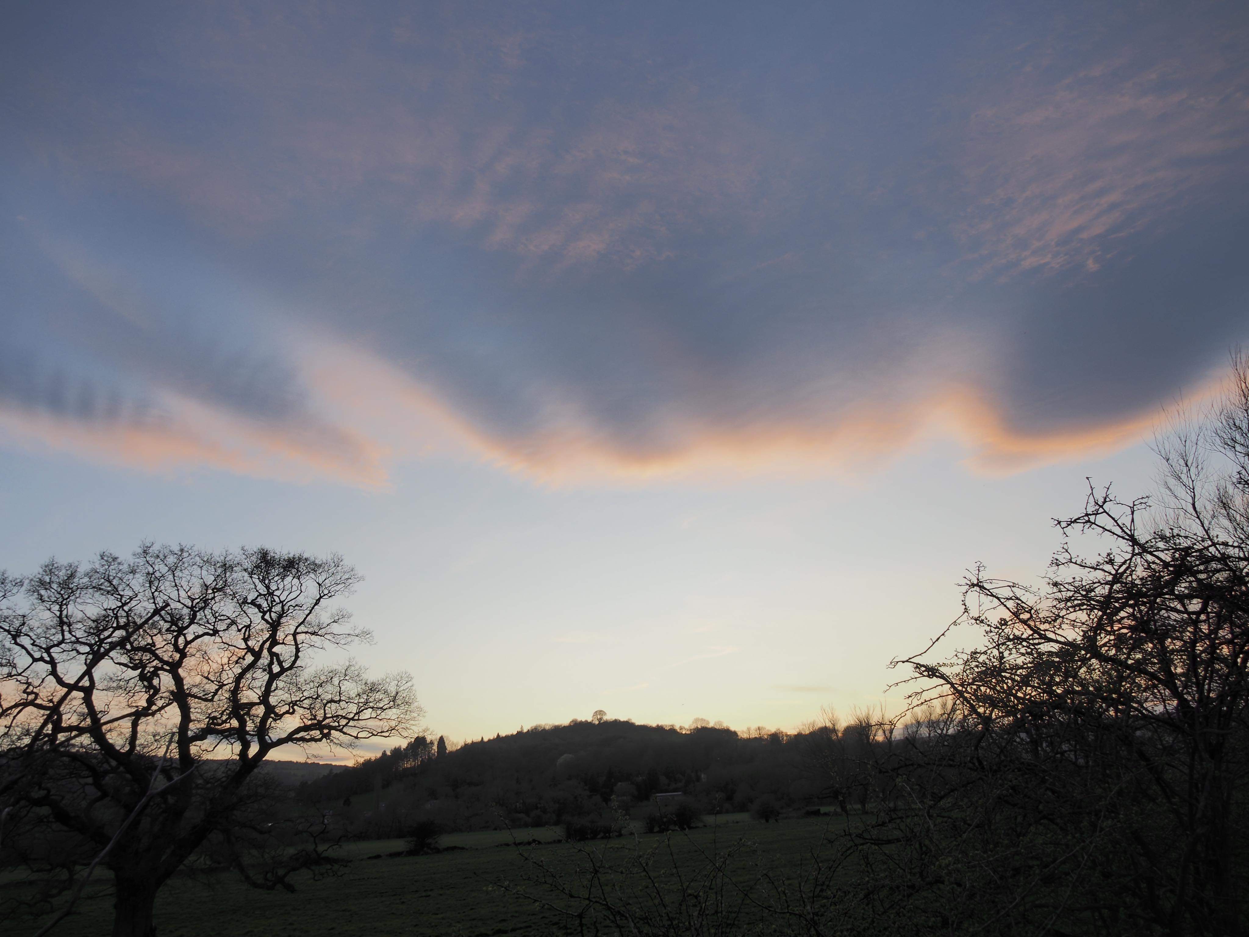 The sightings occur a few hours before or after sunrise/sunset. Unfortunately, it was too cloudy to see anything.