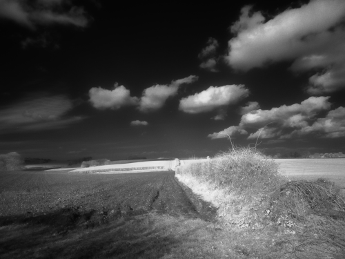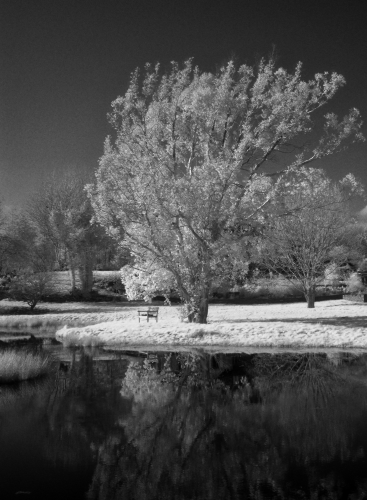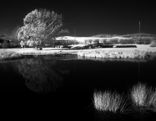 Infared photographs are interesting because they show a range of effects which are significantly different from visible light images. Most notably, clear blue sky appears very dark, whilst clouds are unusually bright, leading to some very striking sky effects. Vegetation is also typically quite bright, and can look like snow. Clothing, skin and animals' fur meanwhile tend to appear almost translucent, whilst sunglasses appear totally transparent. These effects are a function of how different materials interact with infrared light. The atmosphere preferentially scatters ultraviolet and blue light, which is why clear sky appears blue and why it looks dark in infrared images. Chlorophyll, the primary photoactive material in plants, absorbs heavily in the red and blue parts of the spectrum, but reflects near infrared (as well as green) light, which is why plants appear bright. Many plant and animal tissues meanwhile are more transmissive to red and infrared light than to shorter wavelengths, making them appear slightly translucent. Don't panic however - infrared light does not make clothing see-through! Ultimately, all of this adds together to give some really interesting and striking effects which can make for great images.