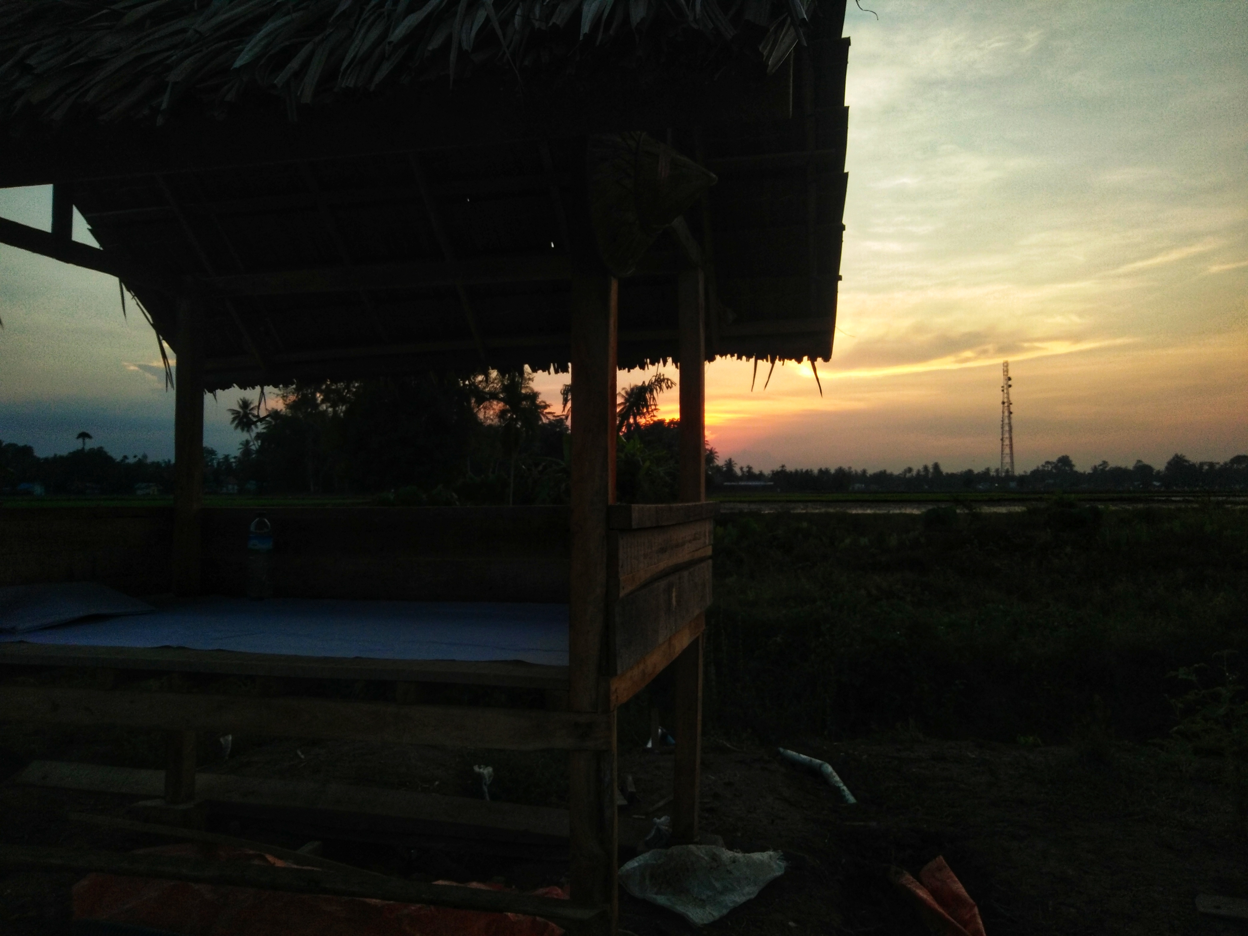 Today the work of building a gazebo has been completed, I really enjoyed it, especially when I had witnessed the sinking of the sun between the gazebo building, in the middle of a stretch of rice fields ...