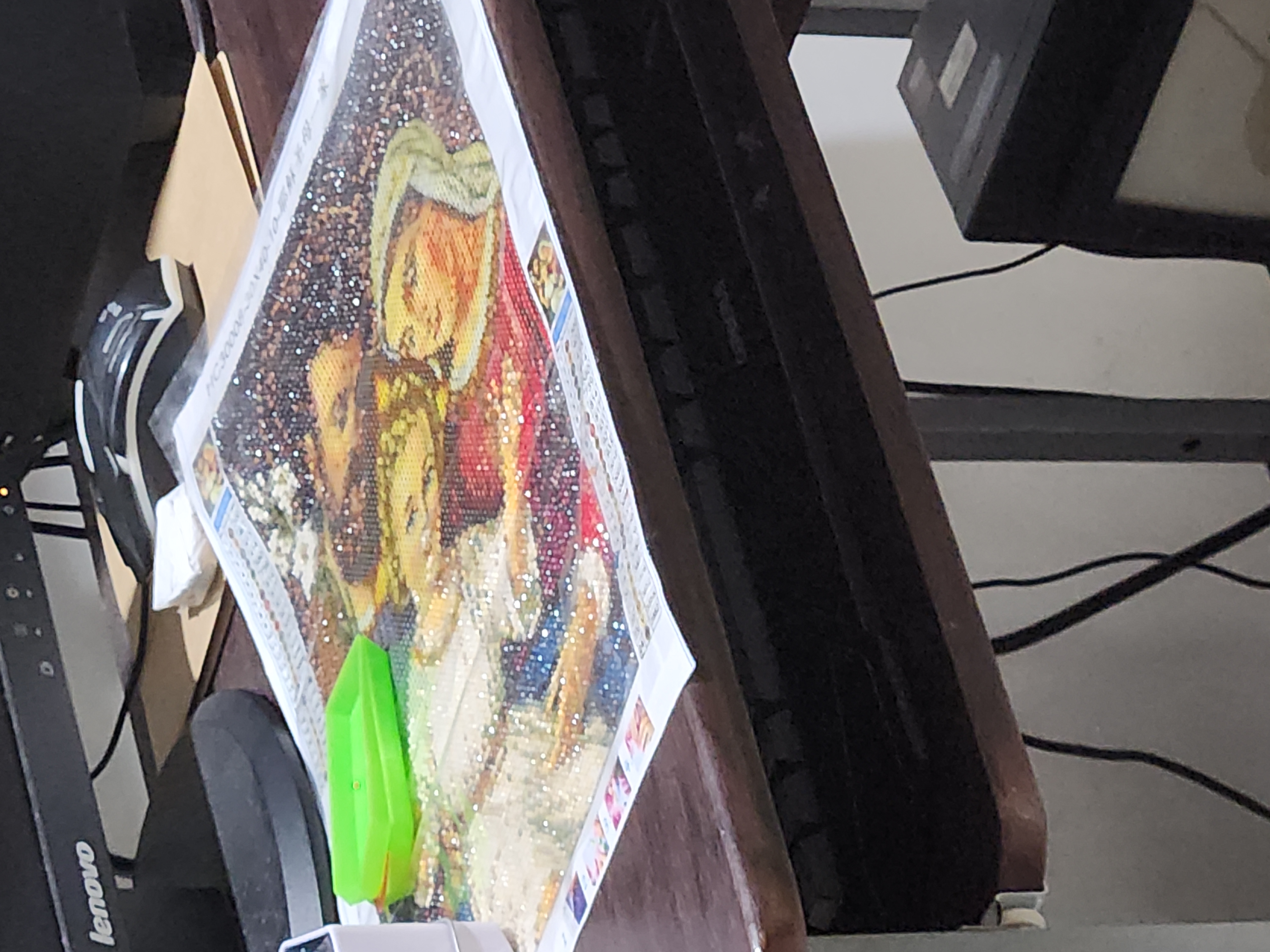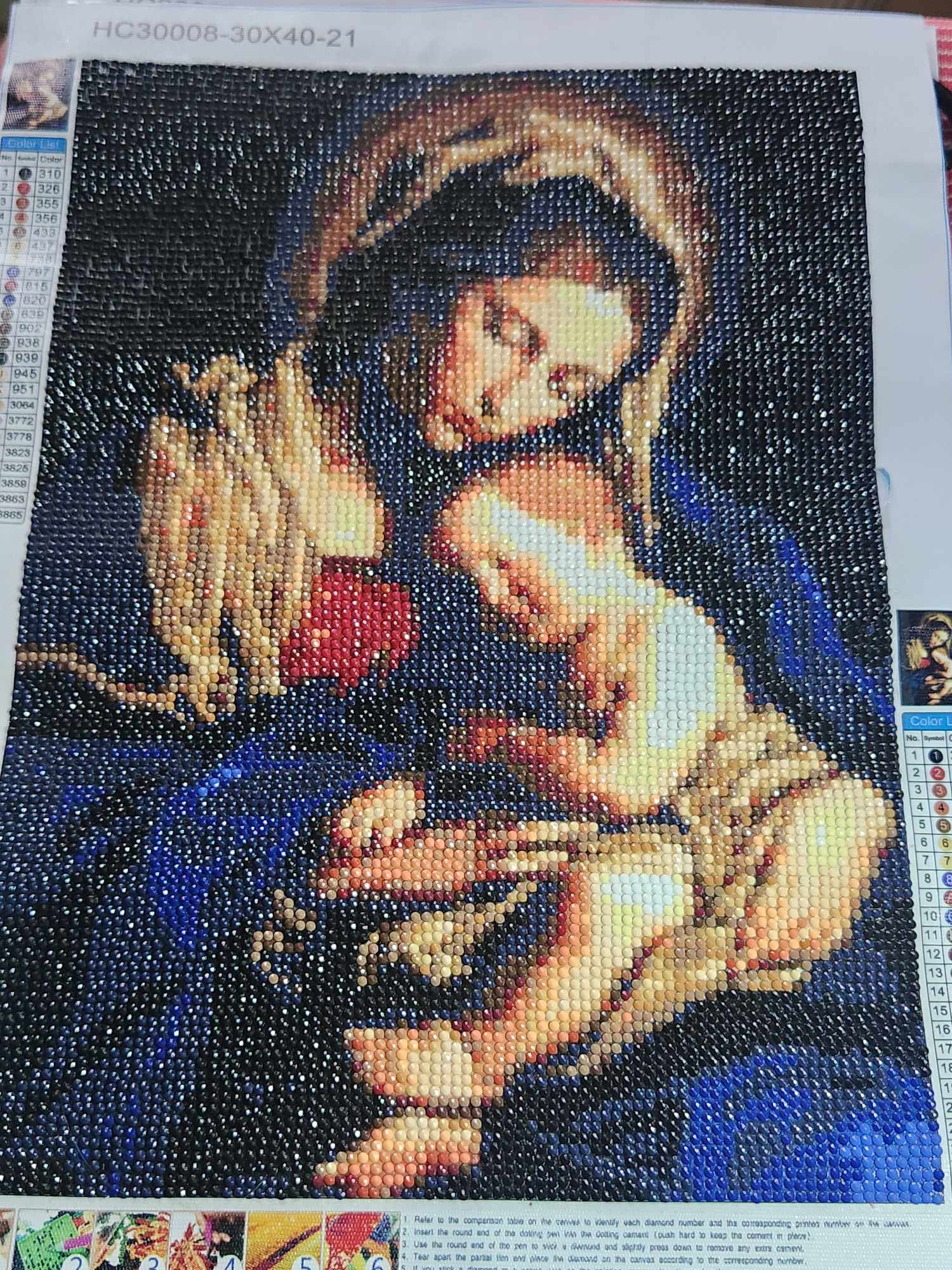 I wonder how big the diamond painting is your wife works on and how long it takes to finish one. Her eyes never heard?