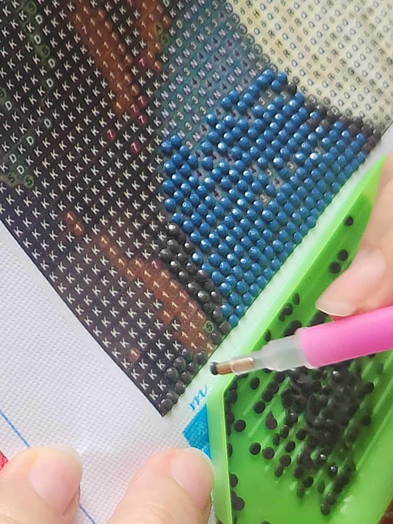 Diamond painting is a new art hobby popularized in the US and Europe in 2015. It involves applying hundreds of multi-colored rhinestones on a canvas. Each detail on the canvas is numbered, and you simply have to stick the corresponding pieces of rhinestone to the detail.