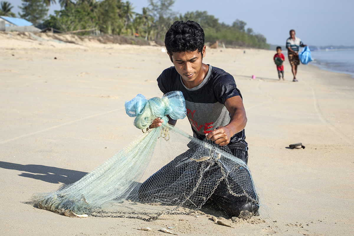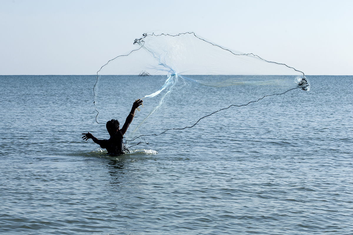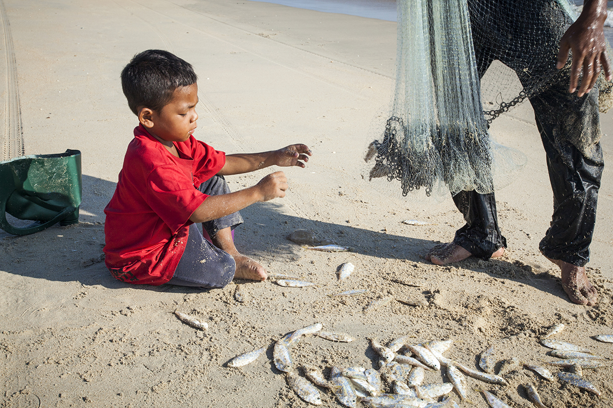 I took a walk along the beach and came across a young man net fishing in the traditional way that you see across all South East Asia. He was wading in up to his waist to cast the net. It seemed every time he managed a decent catch.