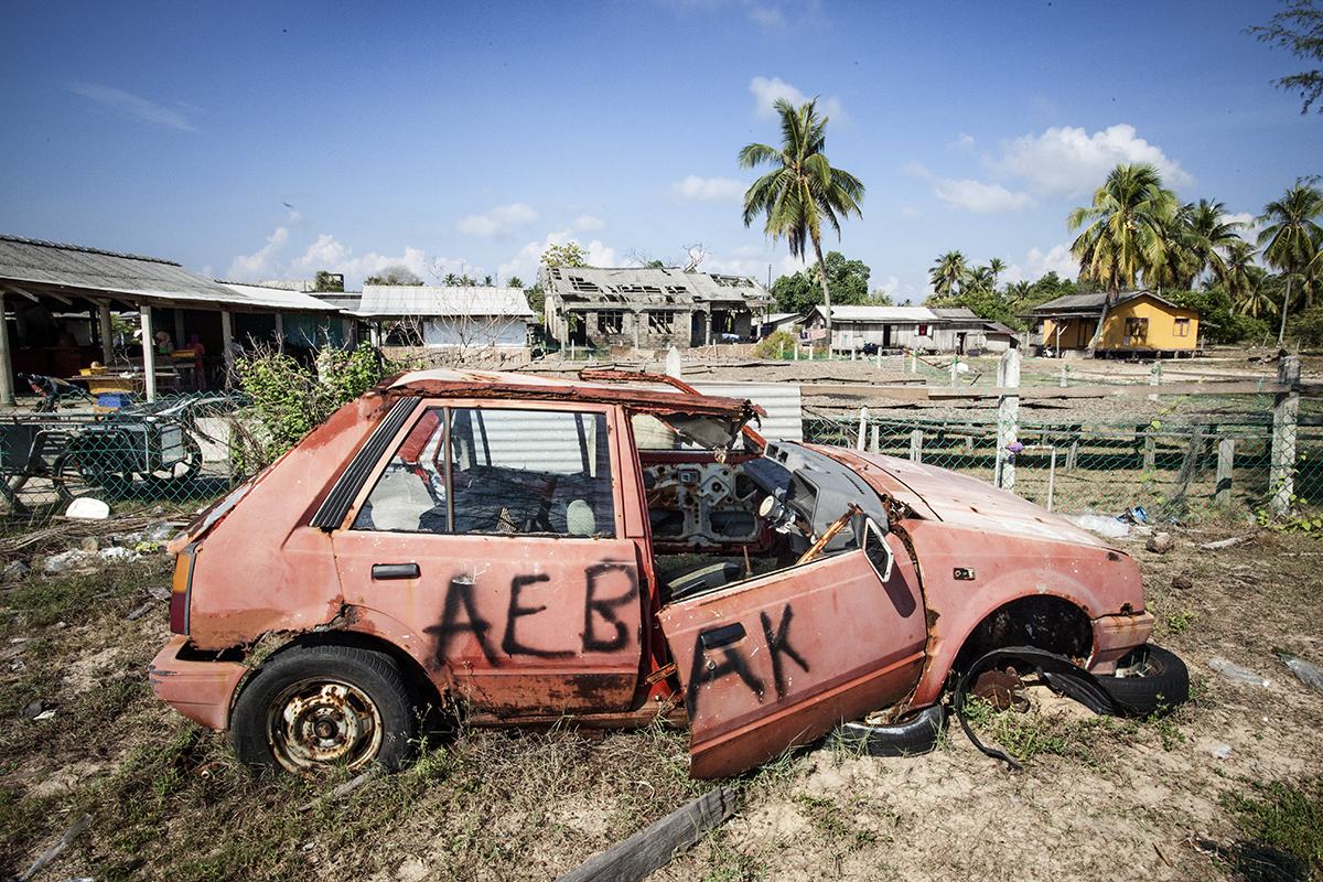 Along the small single-track beach road from Tok Bali there are a few isolated houses and farmsteads. Many gardens had racks where the locals were drying out fish. This was a very peaceful and quiet walk where I passed the odd abandoned car or deserted house and only met a couple of people.