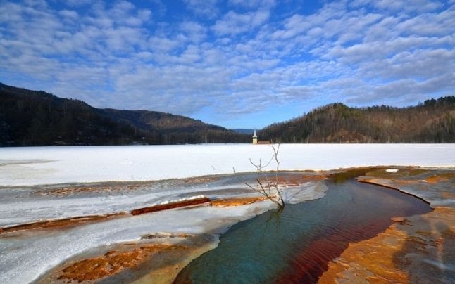 Extreme tourism at Geamana in the Apuseni Mountains. How ecological disaster looks like an attraction for thousands of people PUBLISHED BY DORIN TIMONEA ON 13.02.2017 An ecological disaster in the Apuseni Mountains, which extends every year through the activity at the Roşia Poieni copper, became an attraction for Romanian and foreign tourists. Regardless of the season, people climb up the mountain to Geamana, where there is a huge steil ditch covering the Sesi Valley. More than 30 years ago, almost nothing was known about Geamana in the Apuseni Mountains. Now the world asks for the "sunken village", becoming a tourist destination, especially for foreigners. Residents in nearby areas already know what to answer when a car stops right, without having to ask questions. "Do you want to come to the sunken church?" The tailings pond covered the village of Geamana, with the 400 houses, turned into the main attraction in Lupşa commune. All that remains in the village where over 1,000 souls live is the tower of the church. The rest is under water. The red and green shades found around the lake lakes in Roşia Poieni, win a certain photographer and tourists coming to see the "miracle". Few are the ones who think more about the suffering of locals who have seen houses, graves and gardens disappear under the turbulent and reddish waters.