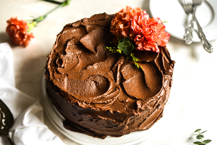 The frosting is also quick and easy to make and provides that beautiful finishing touch that no cake can be without. If you want to be extra fancy, some fresh flowers are never a bad idea.
