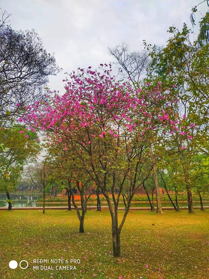 Yesterday i went a park with my family and captured this photo by my brother's phone.In the park there are many this type of flower tree.The tree covered by beautiful flowers because it is spring running in Bangladesh.The environment of the park was so beautiful.Lots of tree,flowers,bird,lake made my day enjoyable.