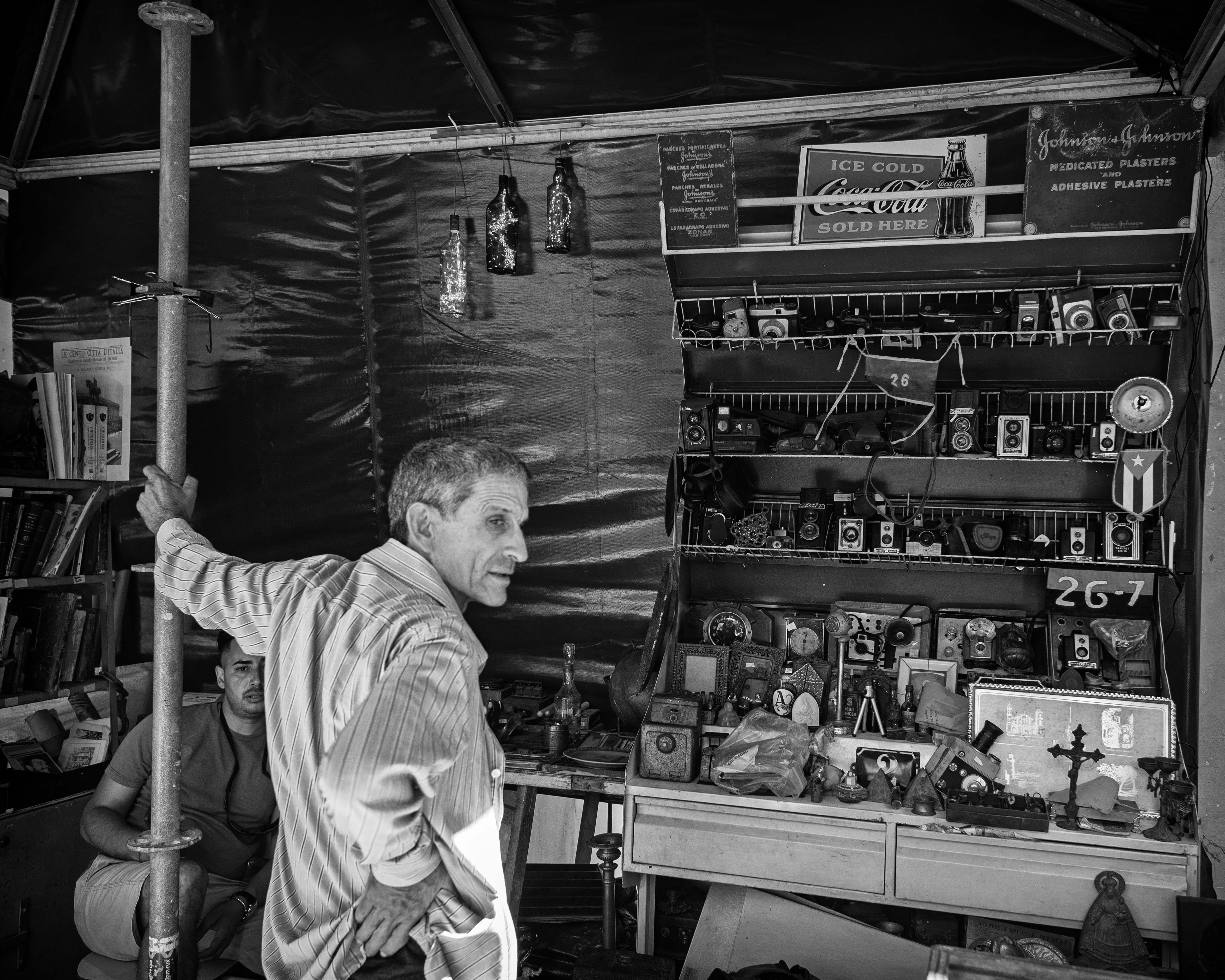 A couple of days ago, I went for a walk through the antique shops of Old Havana. I don’t really know why I enjoy looking at those old objects so much — maybe it’s because I’m curious about the stories they carry. I’m always on the lookout for interesting cameras for my collection, or a lens I can adapt and test on my digital camera.
