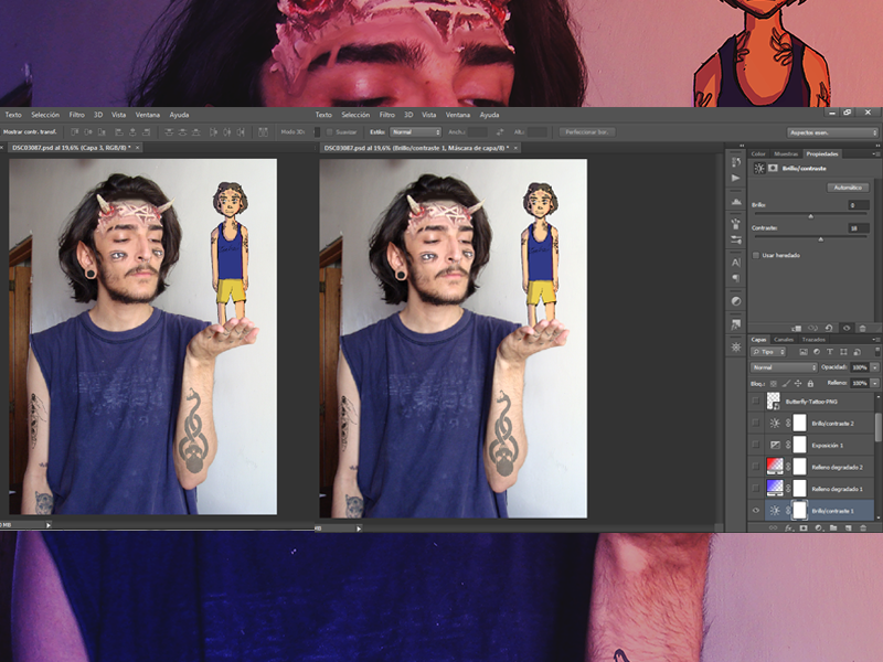 Also I added some extra tattoos, to give more richness to photography, placing the image and deforming with the option of "transformation", to adapt them to my body.