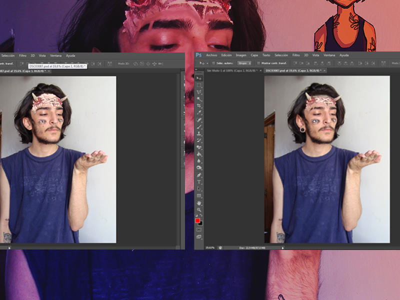 In the first instance you can observe natural photography, without any manipulation, then with the effect of liquefying, deforming part of my ear, lengthening it and making a mounting of a hole in it.