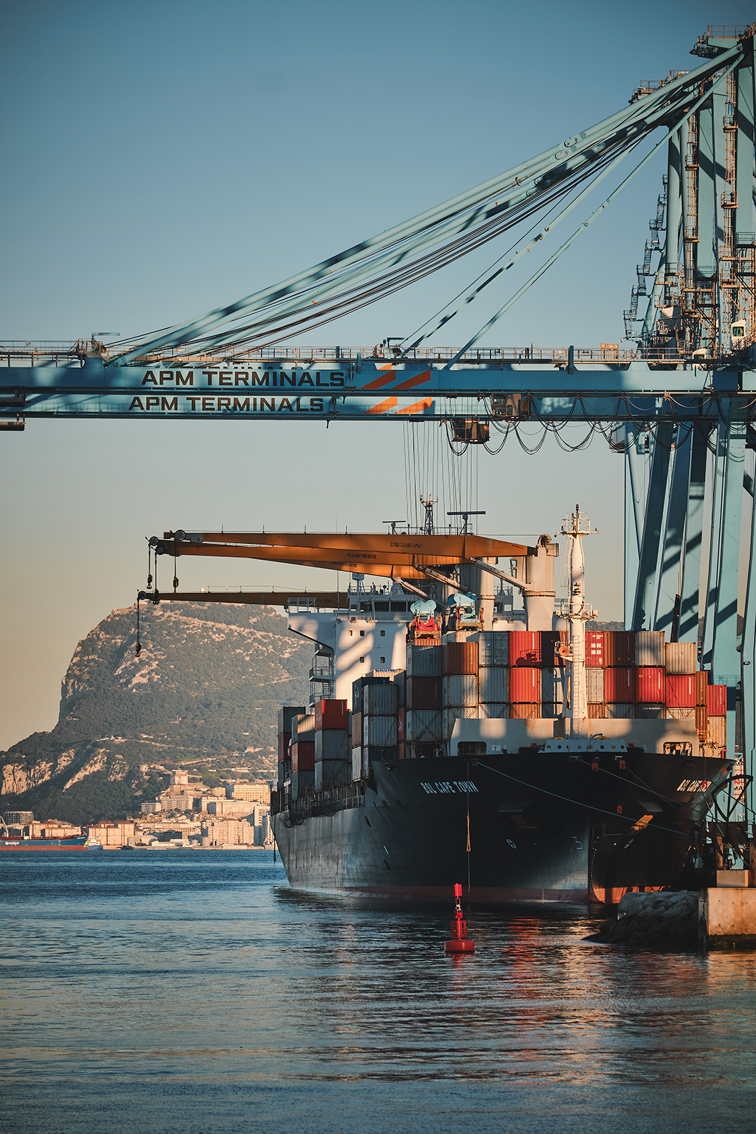 around golden hour, with the Gibraltar rock in the background