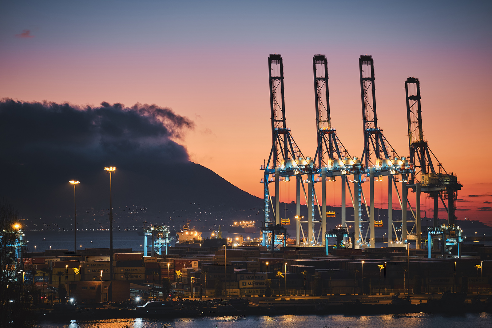 Went down south for work to Algericas, in the south of Spain. One of largest port in Europe sits there, and it is quite beautiful and impressive when the lights are dimming.