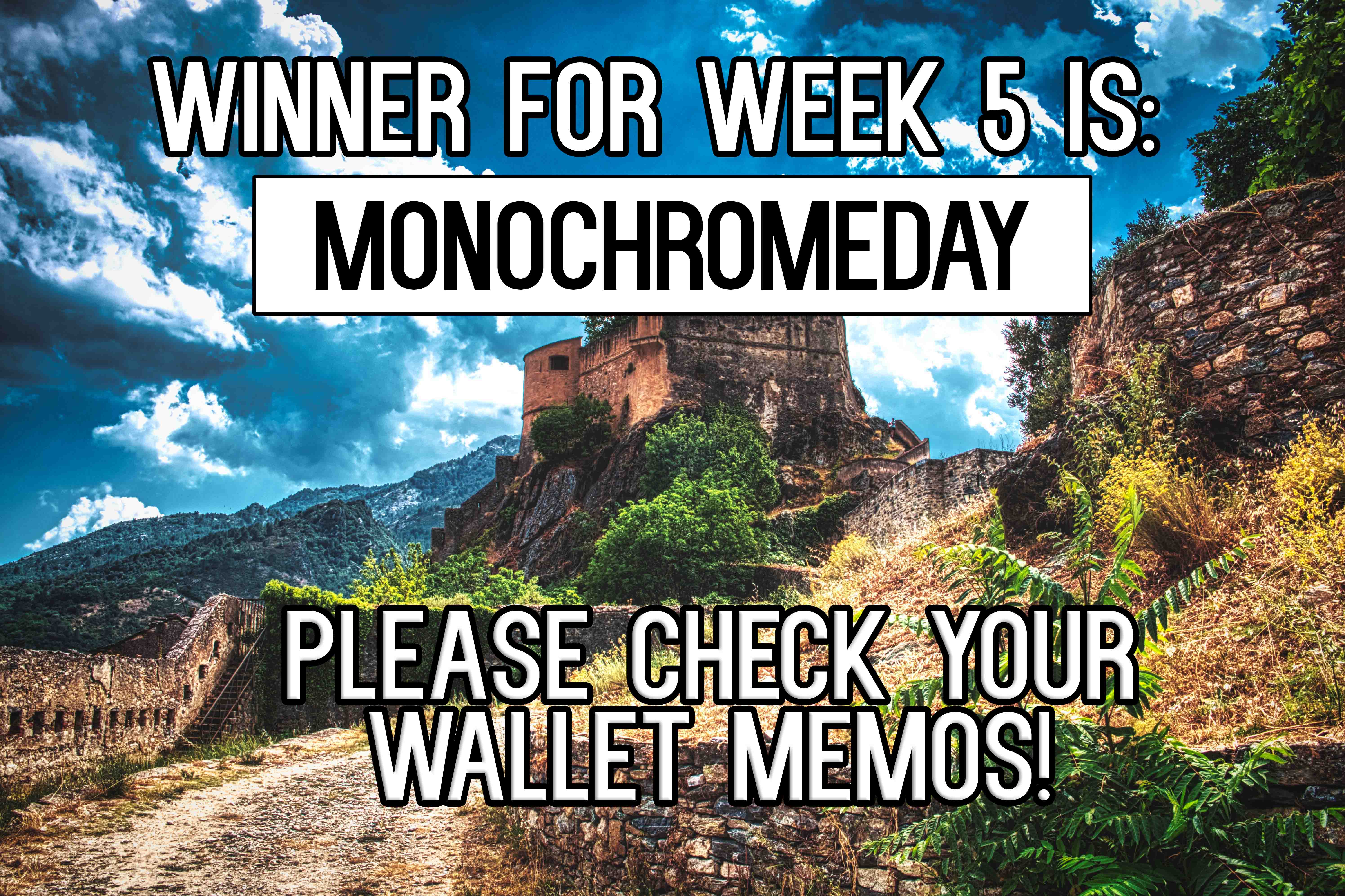 Hey all, here's the winners for this week: MONOCHROMEDAY