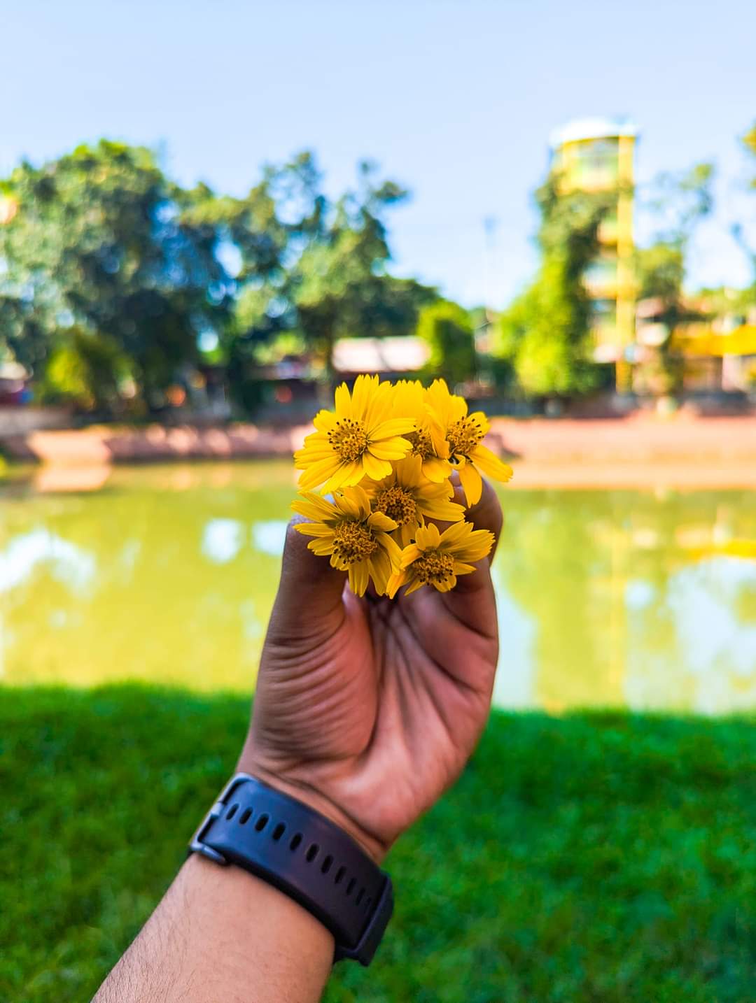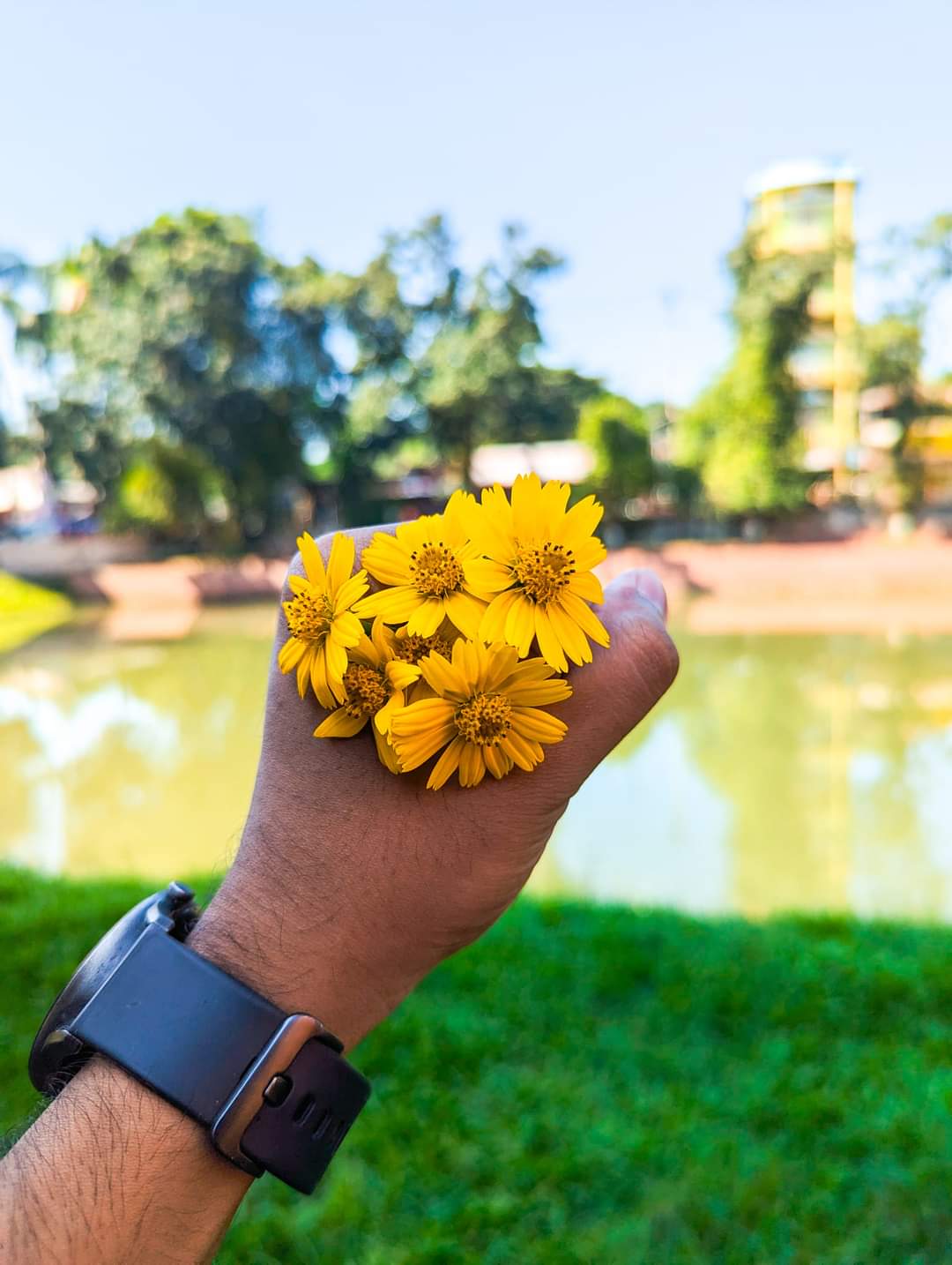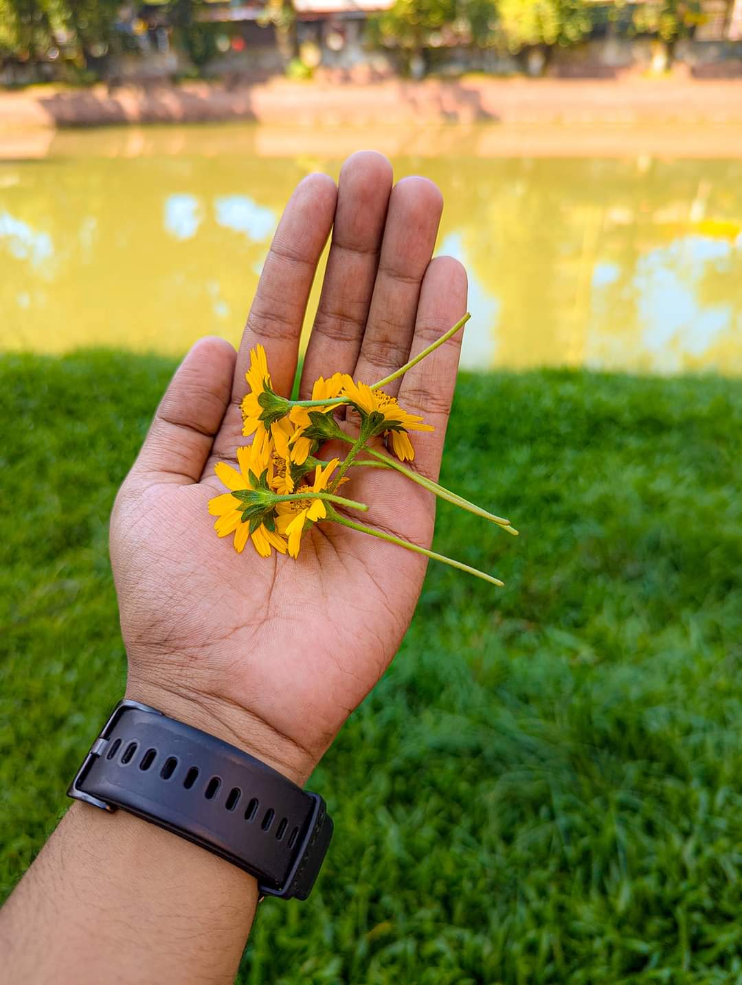 Wedelia is one of my favorite flowers, especially because people cultivate it on their land, aiming for good financial returns. Many people become self-reliant through its cultivation and even grow it on a large scale. When I took these flowers in my hand for photography, I had taken permission from the owner beforehand. I was trying to capture these photographs, which I am sharing with you today, along with some details about this flower.