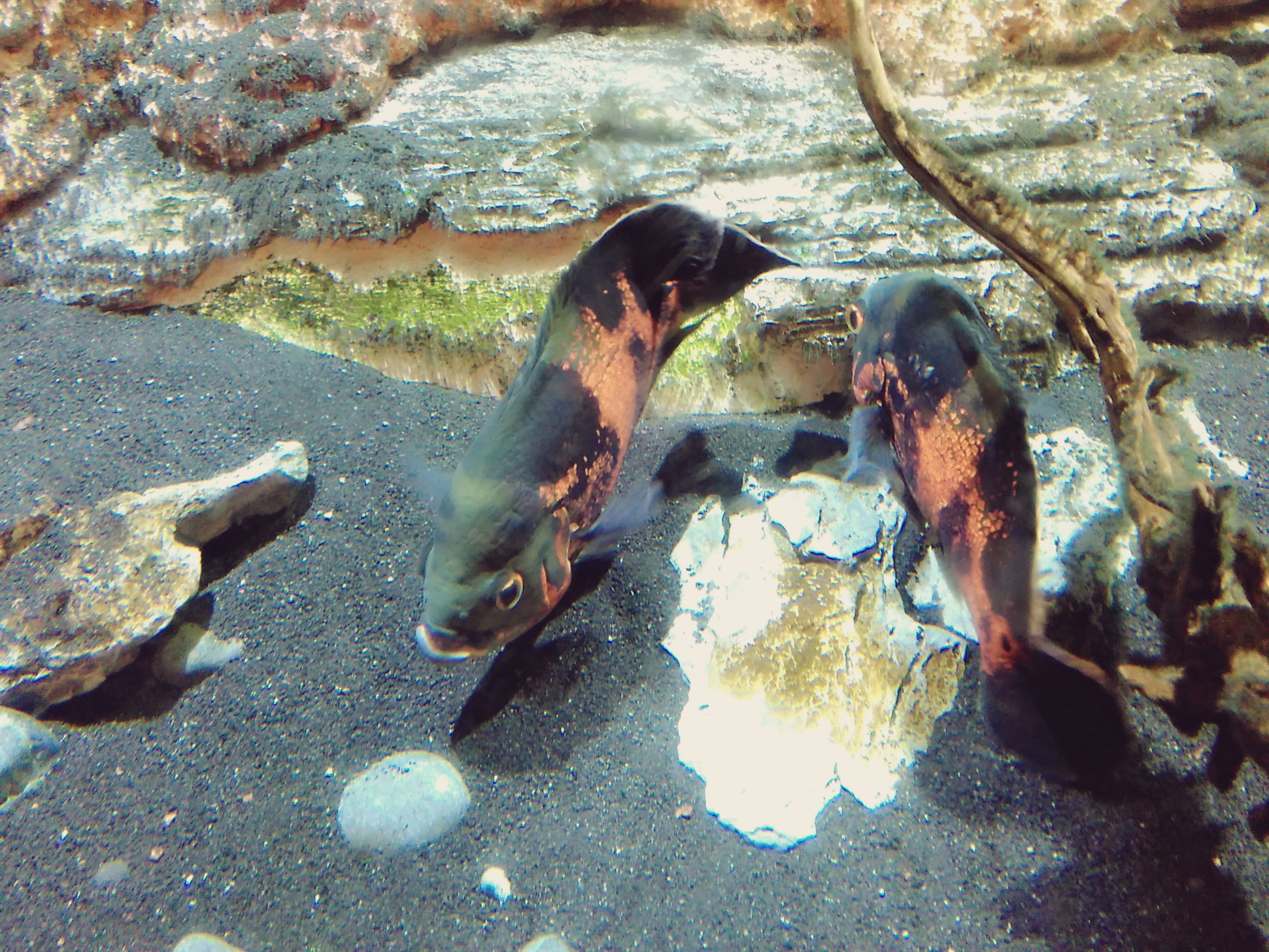 Some interesting looking little fish, and that too a lovely pair! Fishes are one of my most favorite animals to photograph, maybe because they just can't seem to remain still and it can get really difficult to capture them with their bodies constantly moving around, but mainly because they come in so many attractive colors and also in various shapes and sizes. I love the lovely pair of fishes shown in the below pictures, colored mostly in my favorite color black with interesting spots of orange also running across the lengths of their bodies.