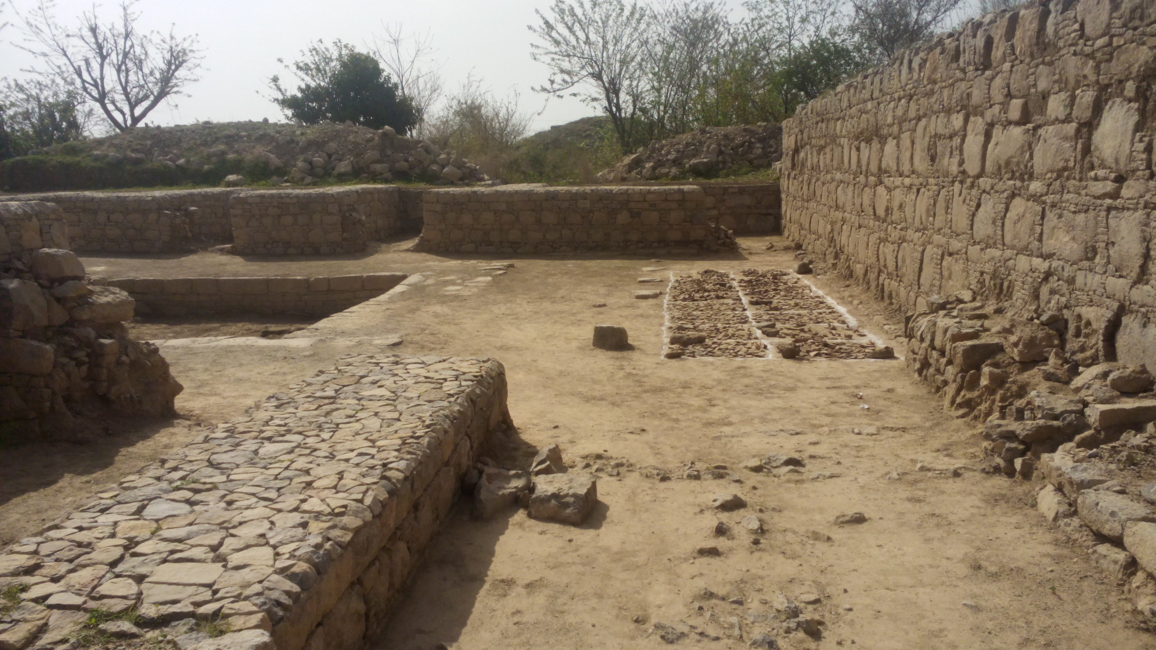 The excavation of the old city was carried out under the supervision of Sir John Marshall by Hergrew from 1912–1930. In 1944 and 1945 further parts were excavated by Mortimer Wheelerand his colleagues. The building that is known as the Apsidal Temple is the largest sanctuary of Sirkap, measuring about 70 by 40 meters (230 by 130 ft) (by contrast: the Parthenon in Athens is 70 by 31 meters (230 by 102 ft)). The Apsidal Temple consists of a square nave with several rooms, used by the Buddhist monks, and a circular room, which gives the building its apsidal shape. After the earthquake that destroyed the city in c. 30 AD, the Buddhist shrine was built in a spacious courtyard. The round part was probably in use for a small stupa, but no traces of it remain. Some carvings were probably done by an artist from Greece.. Ancient Taxila was situated at the pivotal junction of the Indian subcontinent and Central Asia. The originof Taxila as a city goes back to c. 1000 BCE. ... The renowned archaeologist Sir Alexander Cunningham rediscovered the ruins of Taxila in the mid-19th century.