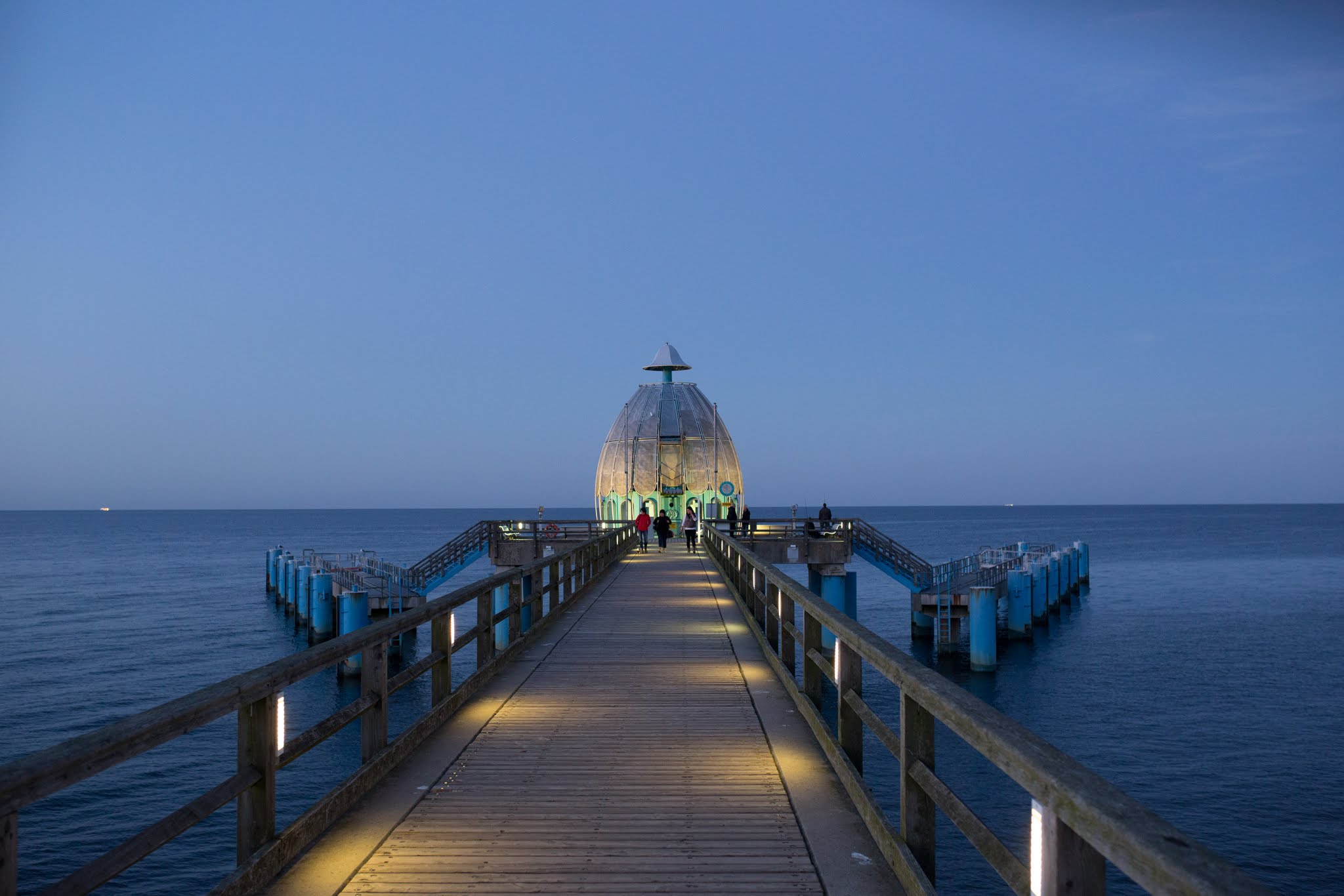 I was traveling to the Rügen at the baltic sea and had the chance to shoot the pier with this special blue lighting which isn't always there.