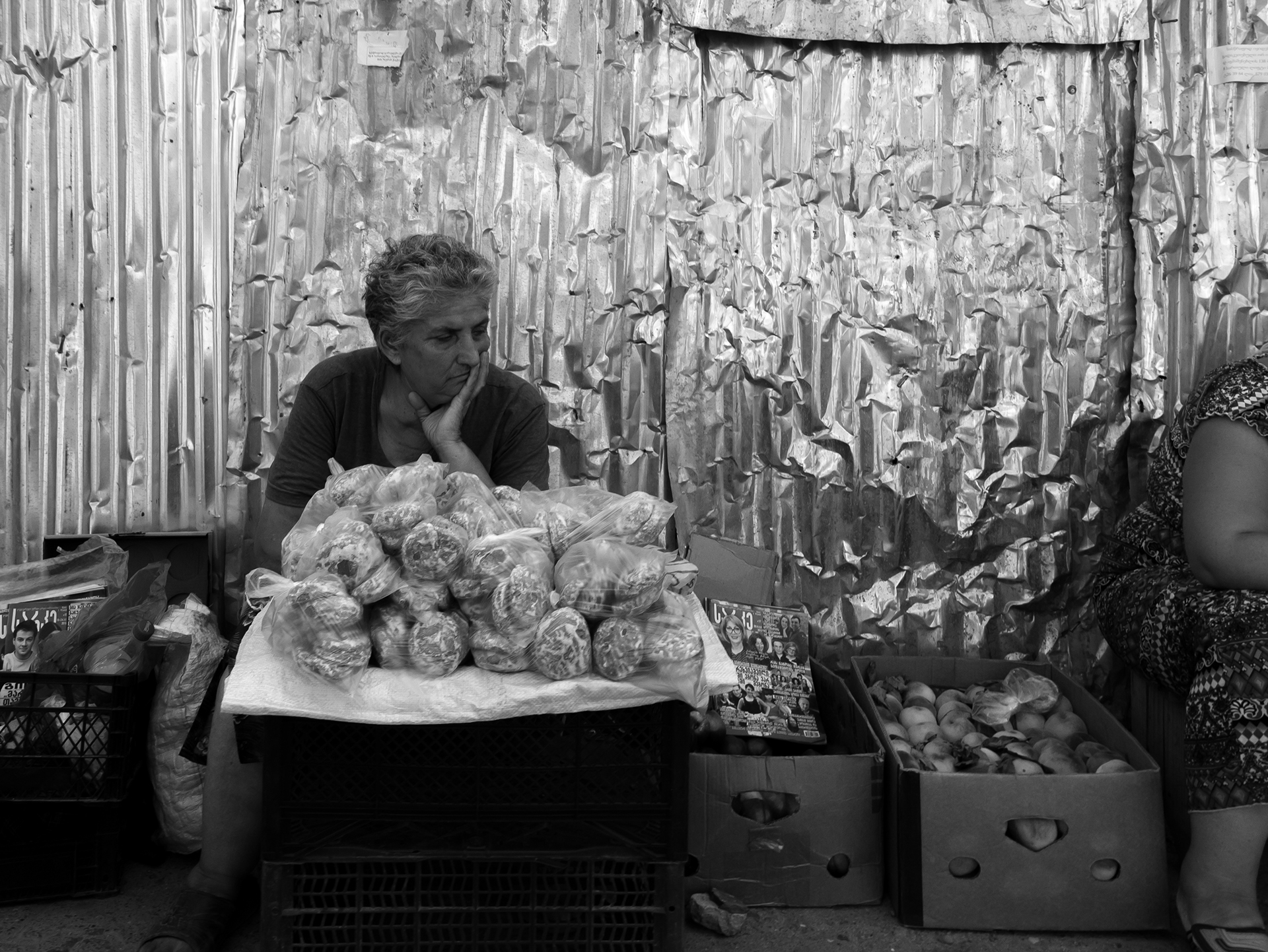 In the beautiful country of Georgia, I found myself working on my sensibility to energetic, smiling, and shouting individuals at various markets in Tbilisi. Smelly meat and juicy cheese next to piles of bright tomatoes and earthy potatoes. Estimating kilo's, counting coins and adding some extra. All in the same mix, what a colorful city...