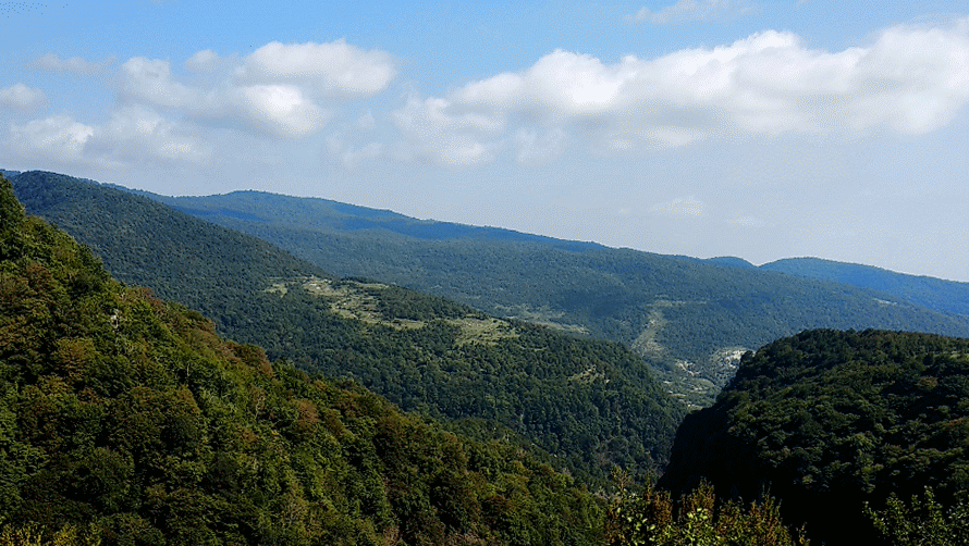 The path through the forest park to the Okace canyon is 2400 meters. I already told you that there are majestic treeshere. Look!