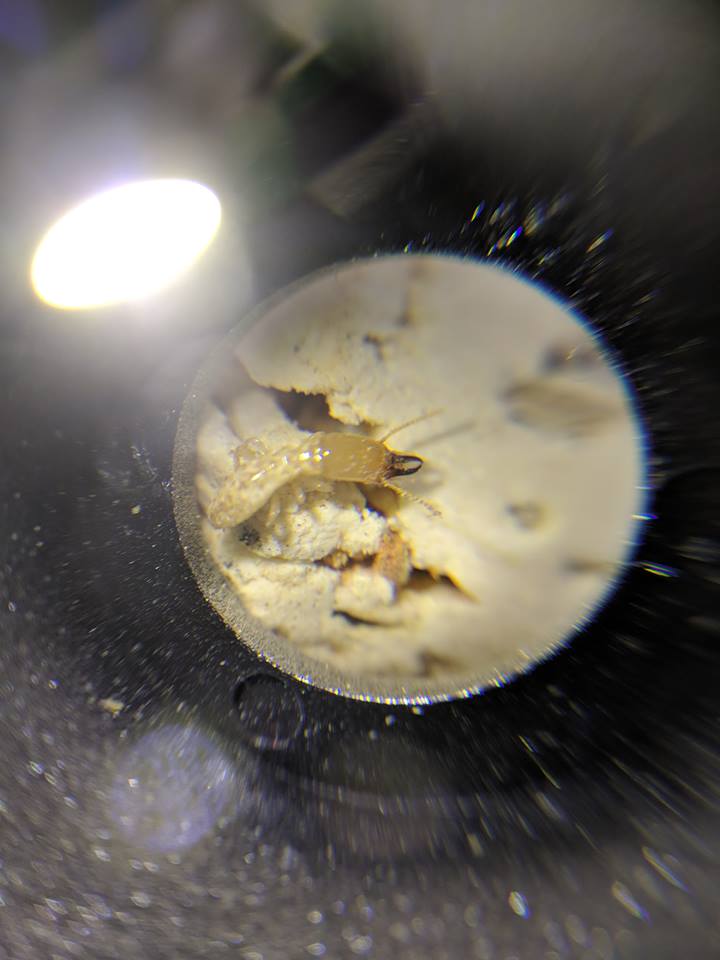 Steemianos, hoy les traigo 2 fotografías de las terminas que extraje hoy desde un palo de madera cerca de mi casa, en las siguientes fotografías les mostrare la cantidad de terminas que hay y en la segunda fotografía mostrare con mi dispositivo de aumento en detalle una de estas terminas, las cuales ya esta entrando en un corcho de madera que utilizan las botellas de vinos.
