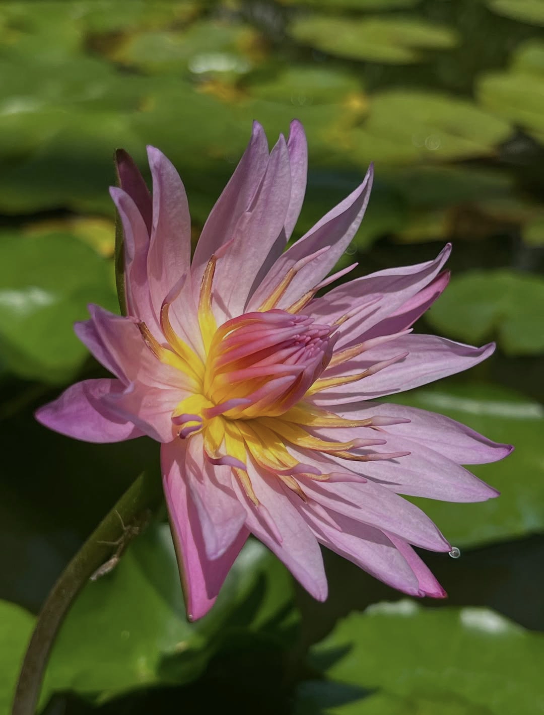 That contains the stamens the flowers open during the day and close at night following the sunlight which helps attract pollinators such as bees beetles and small flies its small size makes it perfectly adapted to shallow waters where larger water-lilies might struggle for space unlike some tropical water-lilies the Pygmy water-lily is cold hardy and well-suited to harsh climates where ice and frost dominate for many months of the year it has a rhizomatous root system which anchors it in the muddy bottoms of ponds and provides energy storage for seasonal growth in ecological terms.