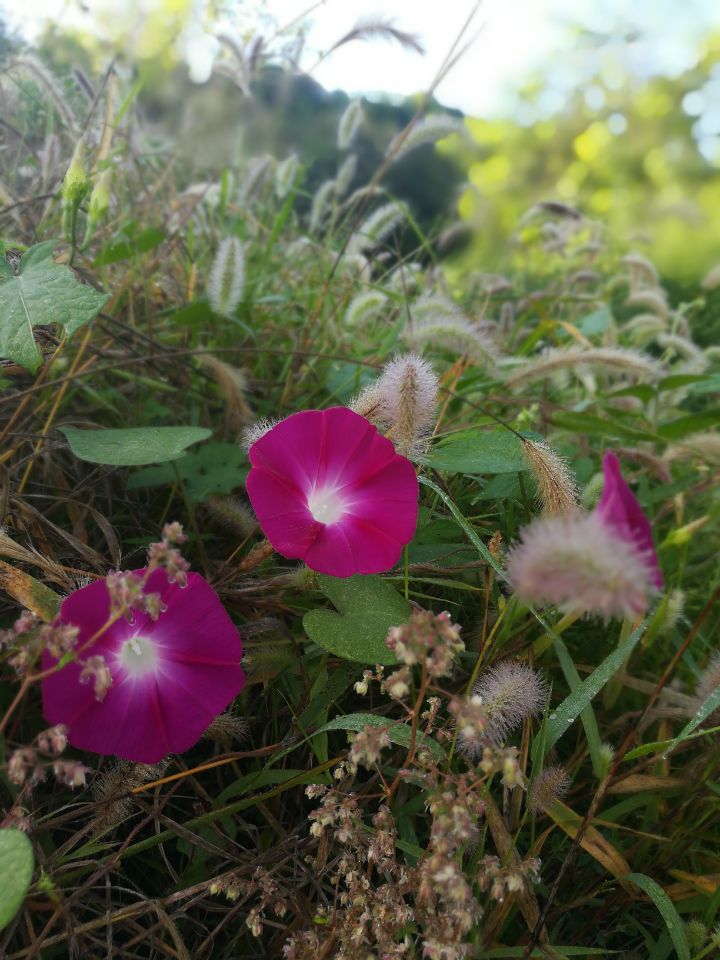 这是前几天早晨去下地掐稻谷的时候拍的,路边的喇叭花。天气入秋以后,早上渐微凉,露水也多了起来,毛茸茸的蒲公英,清晨未干的露珠,鲜艳的喇叭花,组成了一副很安静很祥和的画面。