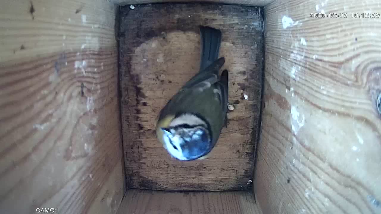 It’s been a few weeks since my last update when the blue tit spent her first night in the nestbox this year, today I was lucky enough to catch her in the box during the daytime and here are a few pictures for you to look at