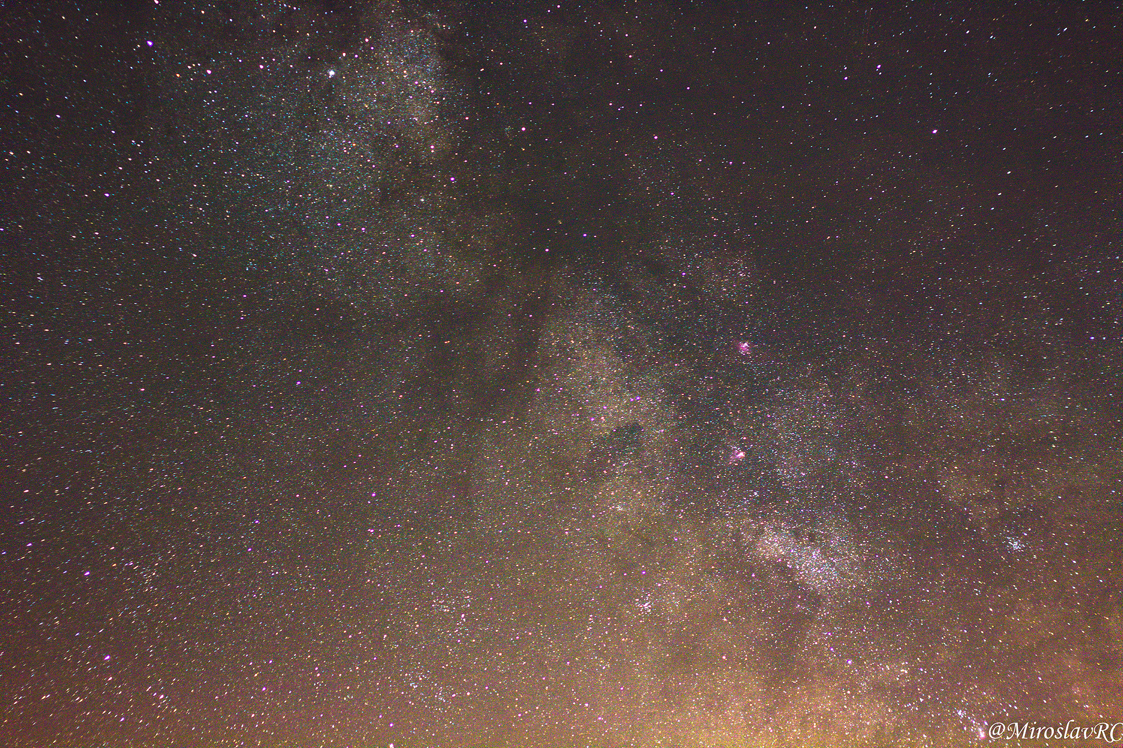 This second one was taken with tighter focal length of 50mm with 50 exposures at 6 seconds just so I can make much cleaner photo at the end and show you much more details of our galaxy, you can even see nebulae with pink tint and clusters that surrounds this area.