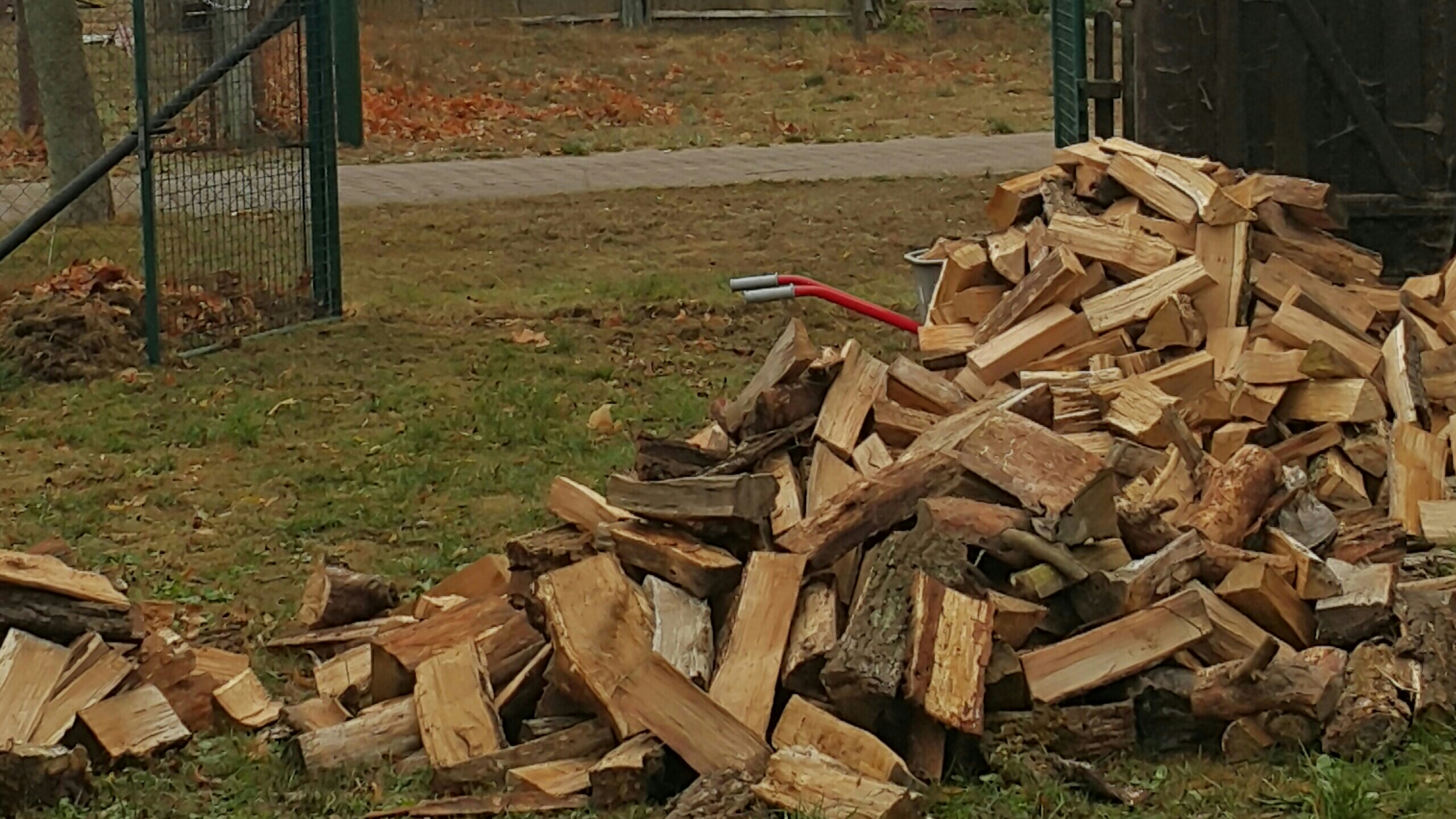 Der Rest im Bild ist inzwischen auch gestapelt :-) Alles ordentlich getrennt in Laub- und Nadelholz.