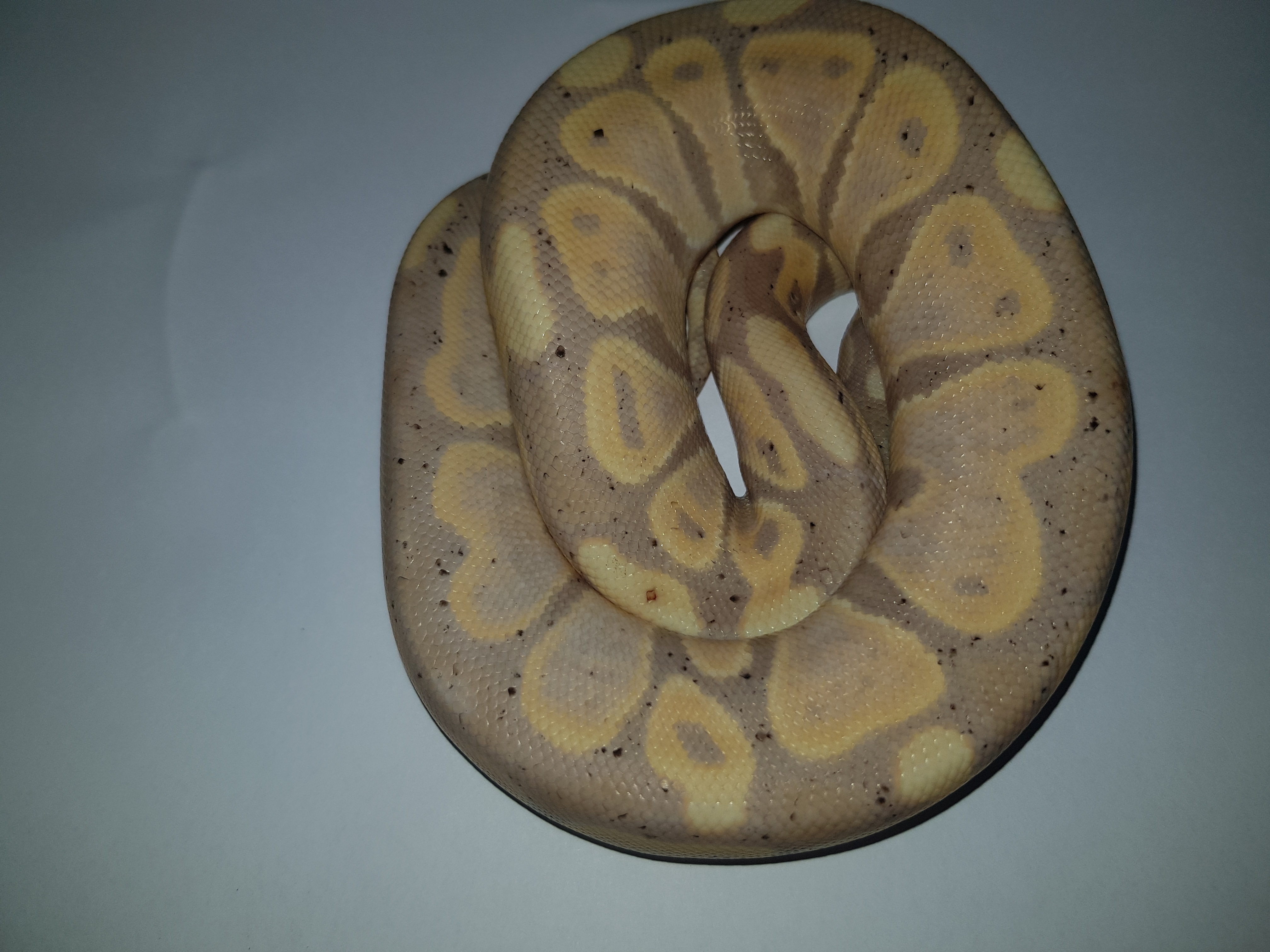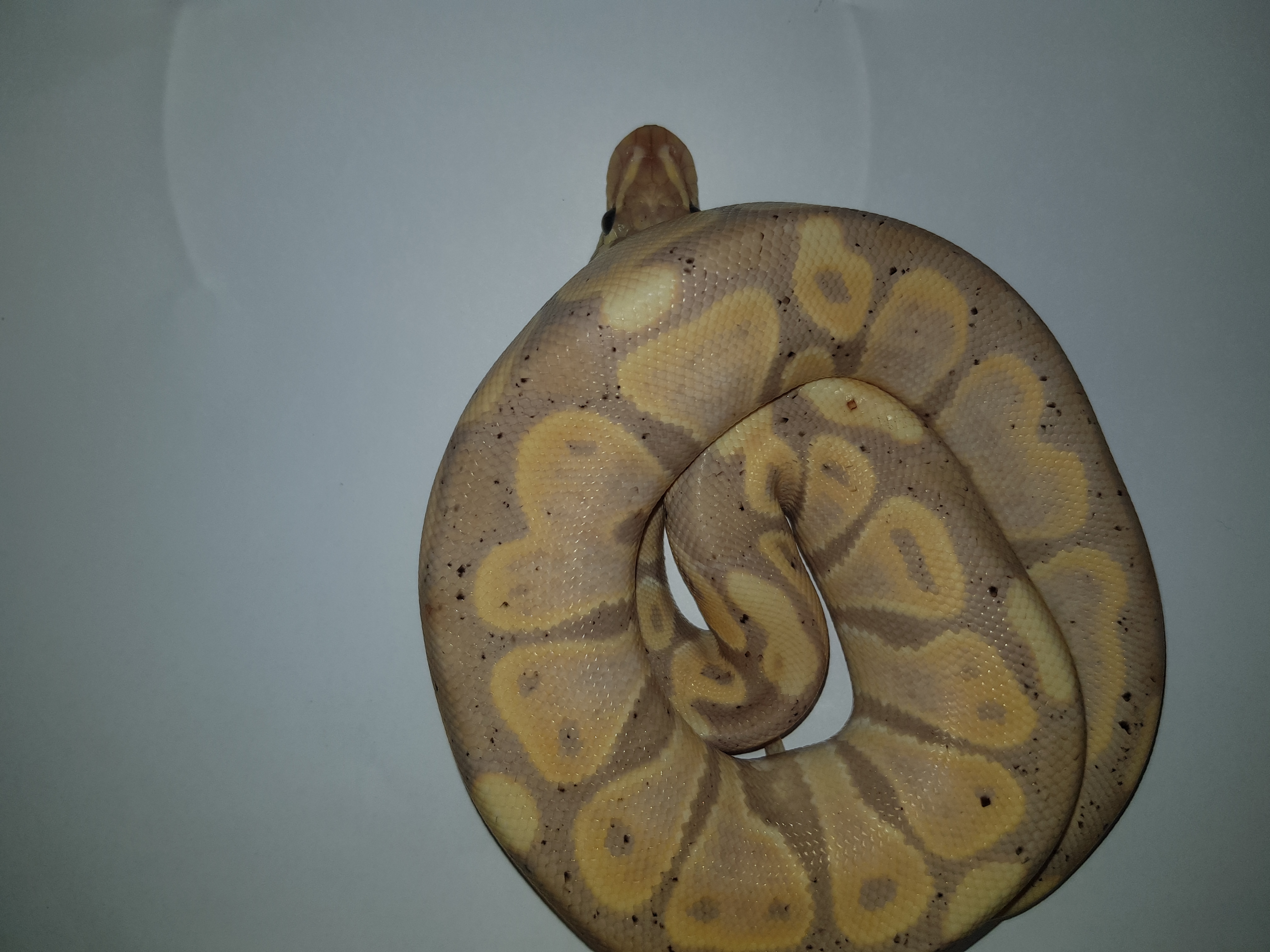 In this article I will refer to this morph as the Banana in order to simplify things. The Banana Ball Python is a light orange and purple colour. As an adult it may show a few specks of dark, melanin-pigmented scales, giving the animal a peppered appearance. This morph was originally thought to be a dominant morph (like the spider and pinstripe morphs) meaning that when you breed it to a normal, 50% of the offspring can result in being Banana, but if you breed a Banana to a Banana you do not get a super form. This has more recently been proven wrong and it has now been listed as a co-domiant morph like a pastel. So if you breed a Banana to a Banana you will get a 25% chance of getting a super banana! This morph is not only amazing on its own but it can also produce some jaw-dropping combos which we have seen coming through over the recent years.