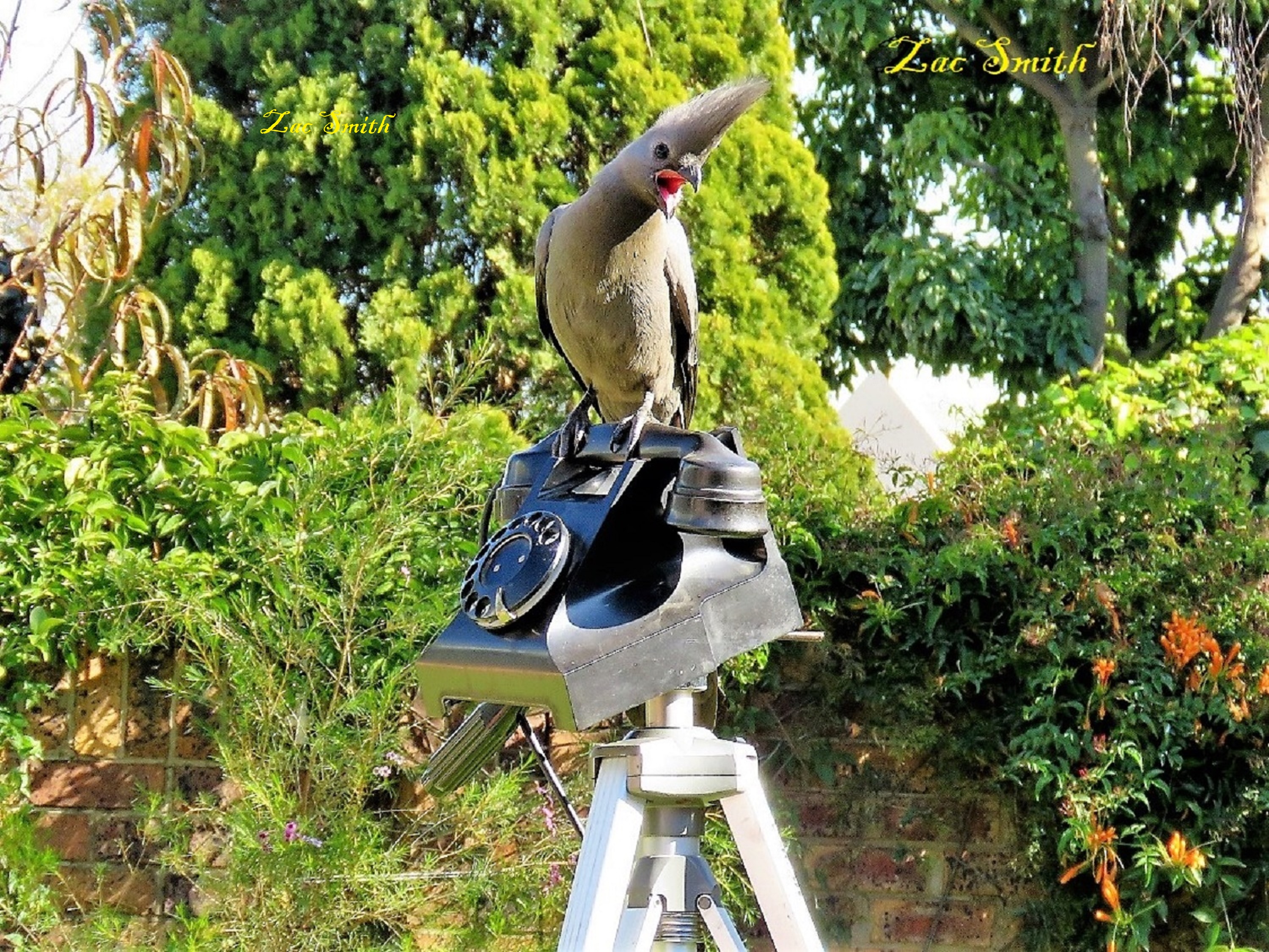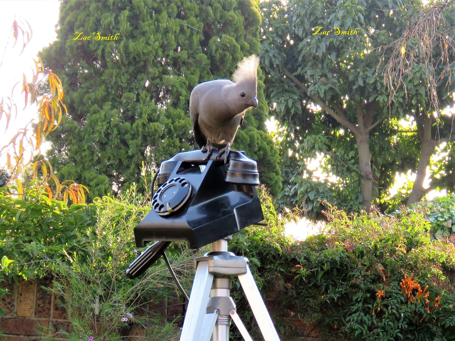I am totally honest here when I say that I didn't know what to expect when I fixed some old stuff from my collection onto my camera tripod. I left the tripod in the garden as I walked around to take some other shots in the gardens and upon my return there was a Loerie sitting on the tripod. So I figured that if they would sit on the tripod, then they will sit on anything.