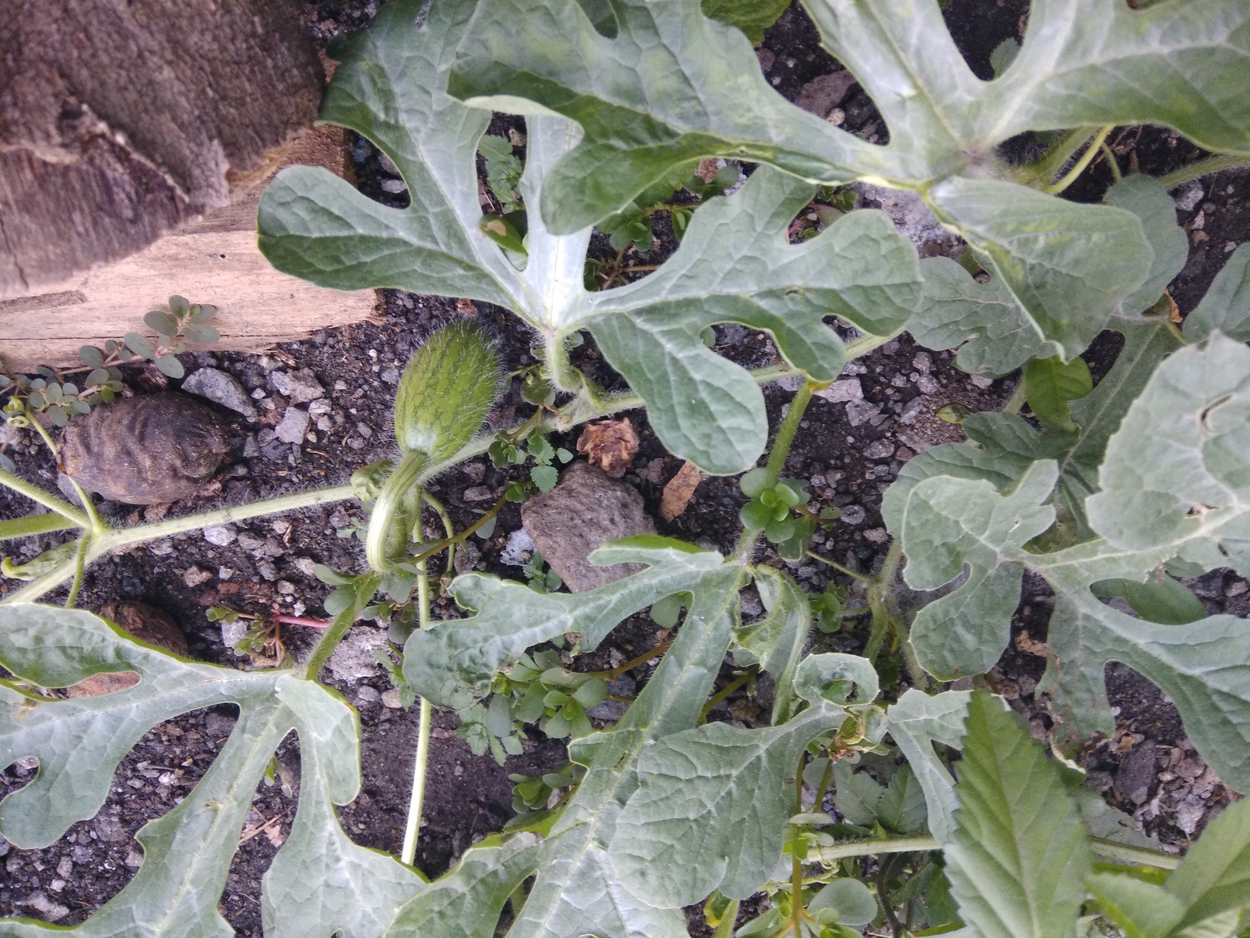 Sore sore melihat tanaman semangka (tak sengaja tumbuh) di depan rumah, ternyata sudah berbunga dan bahkan sudah ada buah yang masih mungil.