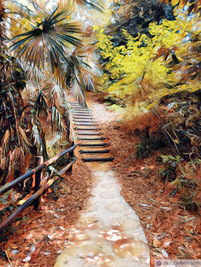 As I begin the climb, the handrail feels cool and rough beneath my palm, grounding me in a world that feels more real than waking life. Each step upward is a rhythmic memory; I am small again, yet I possess a strange, dream-like certainty of the summit. The fan-shaped palm fronds overhead rustle with a secret language, whispering names of friends long gone and summers that never seemed to end. There is no urgency here, only the steady, comforting pull of the trail leading toward a destination I can almost name.