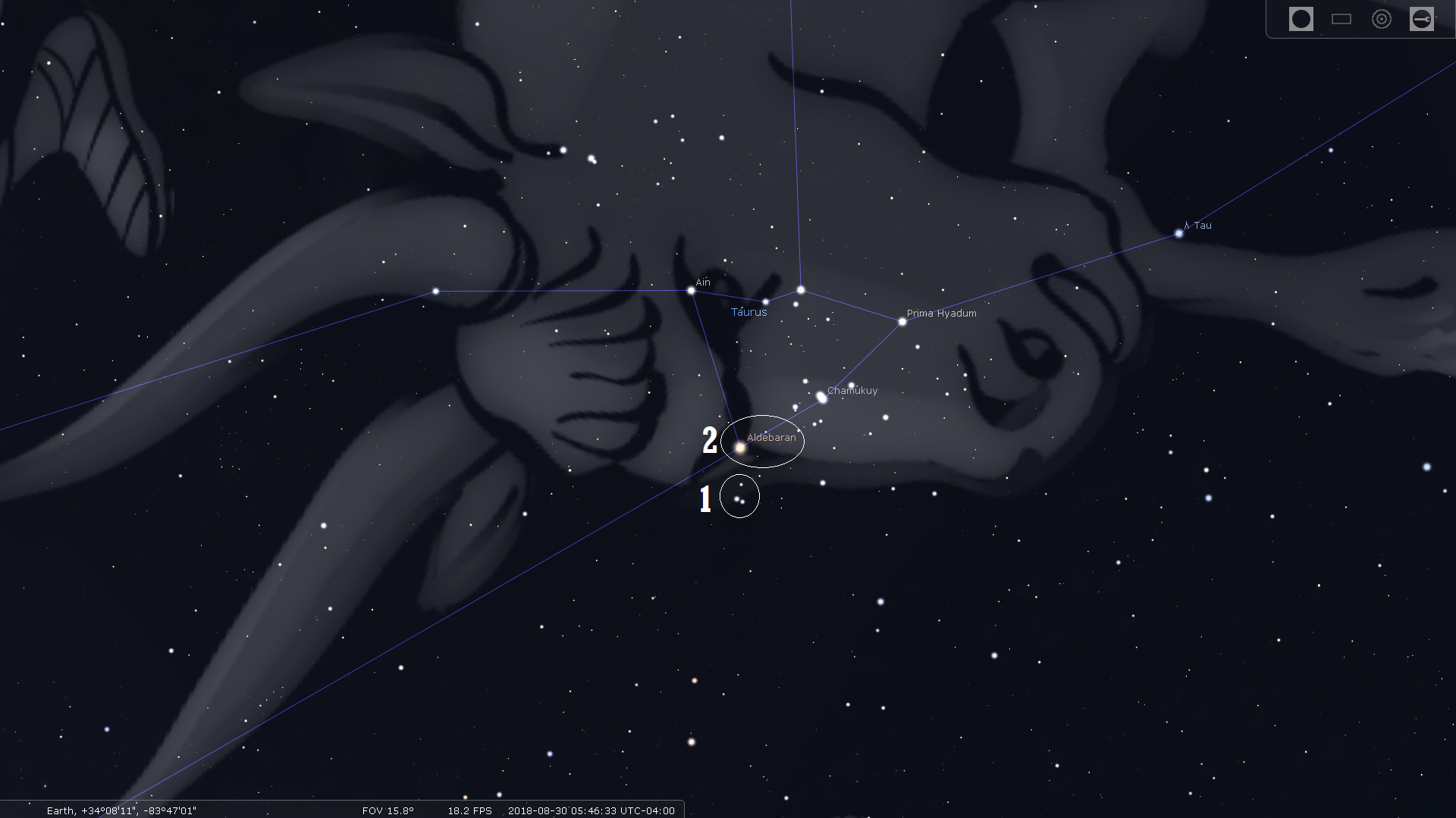 Orion has been rising in the southeast a few hours before sunrise lately. With it has come the bull. These photos are from Orion's left foot, belt, right arm, and face and Taurus' right eye and the tears below it.