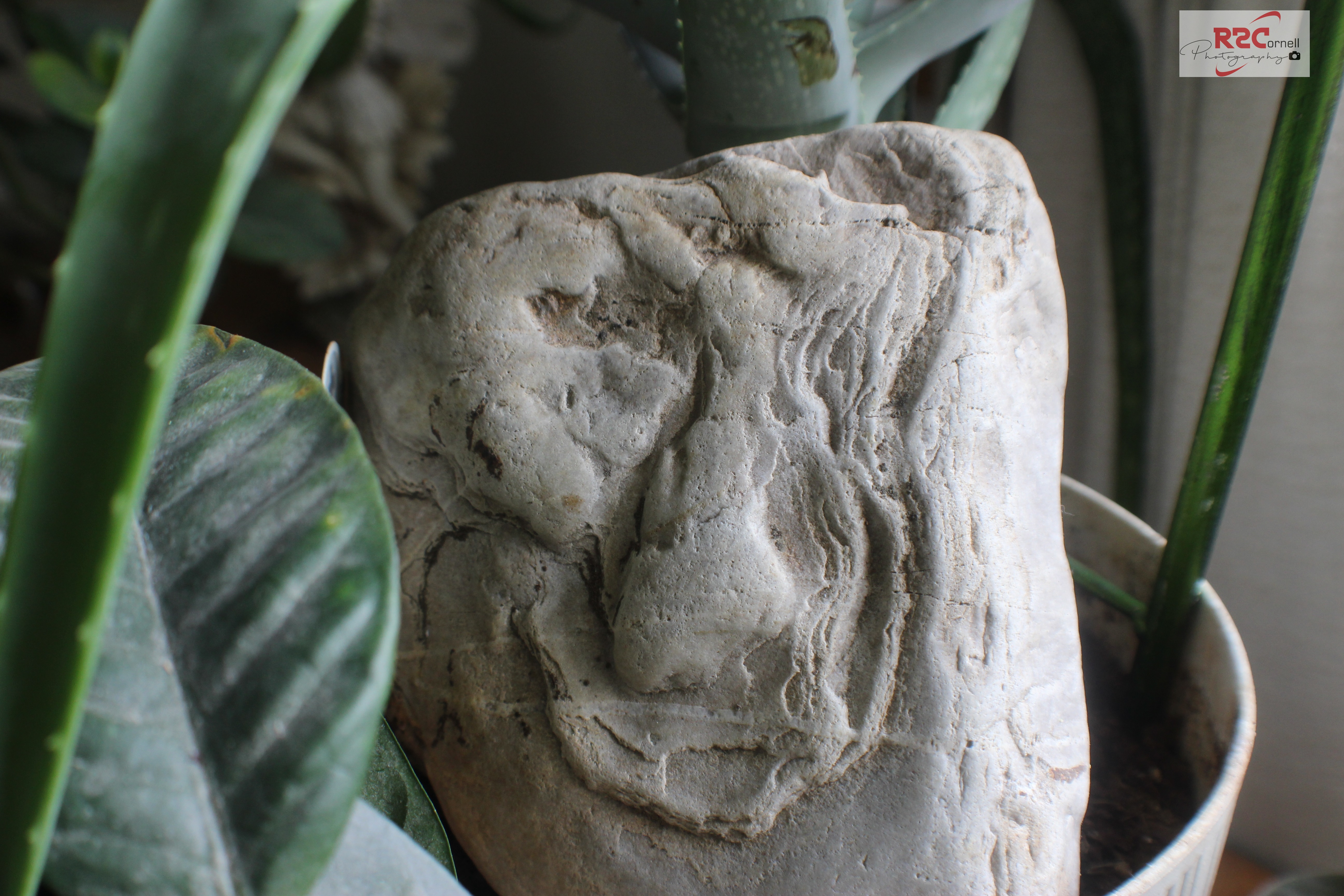 I thought I would include this next photograph for fun. This rock has kept me company in one of my gardens for many years. I have another that I need to try and find, because he tends to work his way underground every year. For or now the one in the photograph is helping hold up my aloe vera plant.