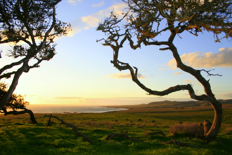 Overlooking the Pacific Ocean on Hearst Castle property in San Simeon, California. If you squeeze through the barbed wire fence behind the cove and hike North toward the windswept groves of oak trees, you might be able to find this old swing. My guess it that it belonged to one of the kids of the ranchers that work this property, West of Highway One on a lonely, beautiful and windy stretch of coast.