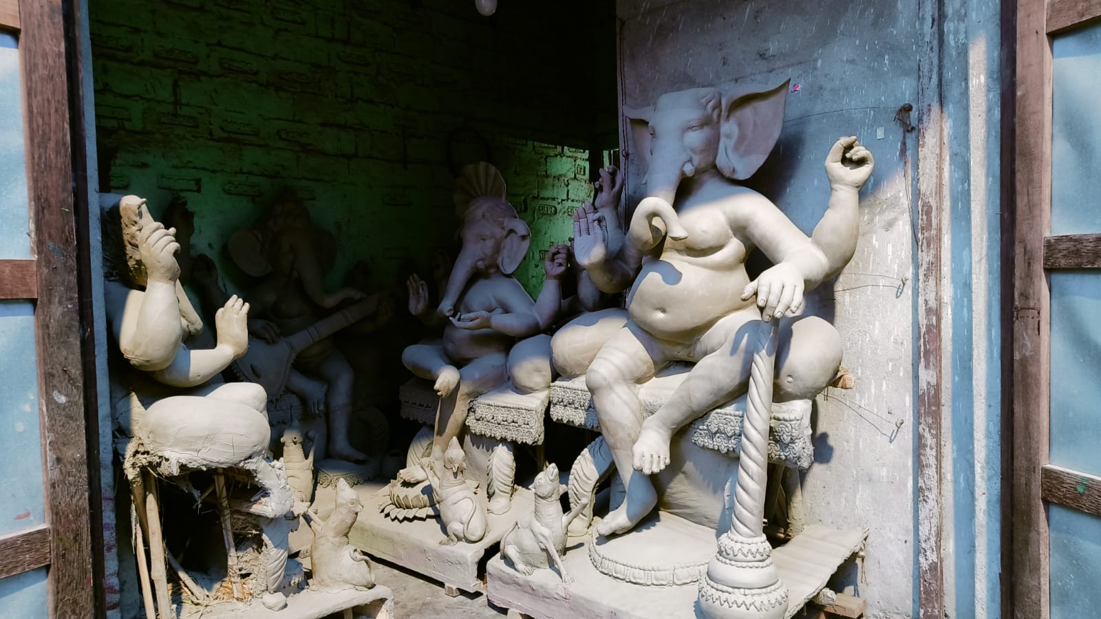 এই ষ্টুডিওটাও এখন অনেক বড় । ছোট বড় নানান নির্মীয়মান মূর্তিতে ঠাসা ।