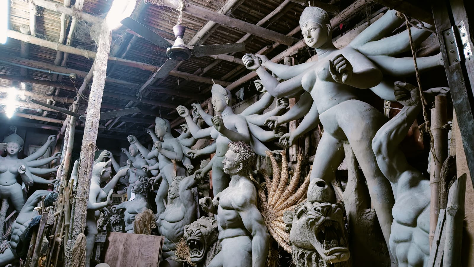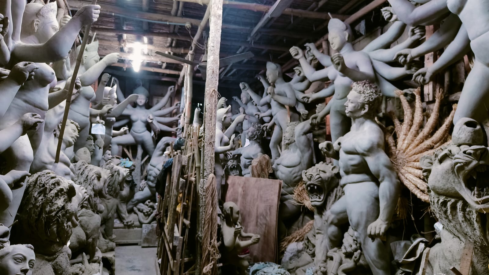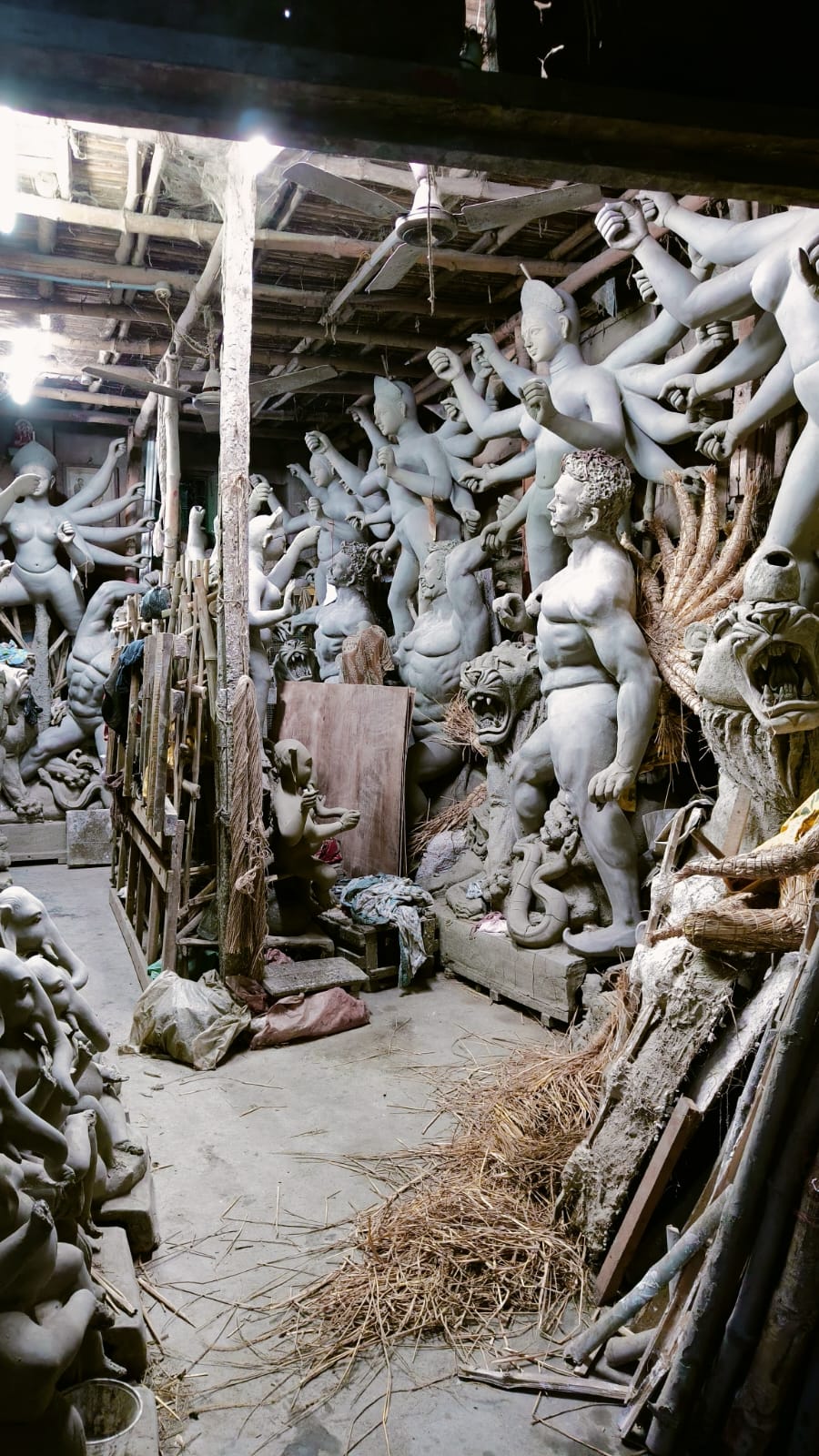এই ষ্টুডিওতে সব বড় বড় দূর্গা প্রতিমা । আর সংখ্যায়ও তারা অগুনতি ।