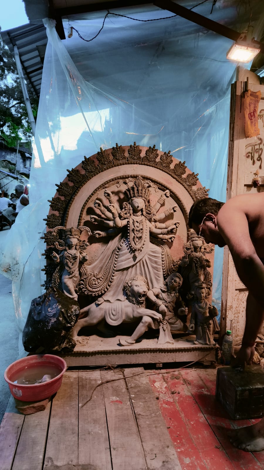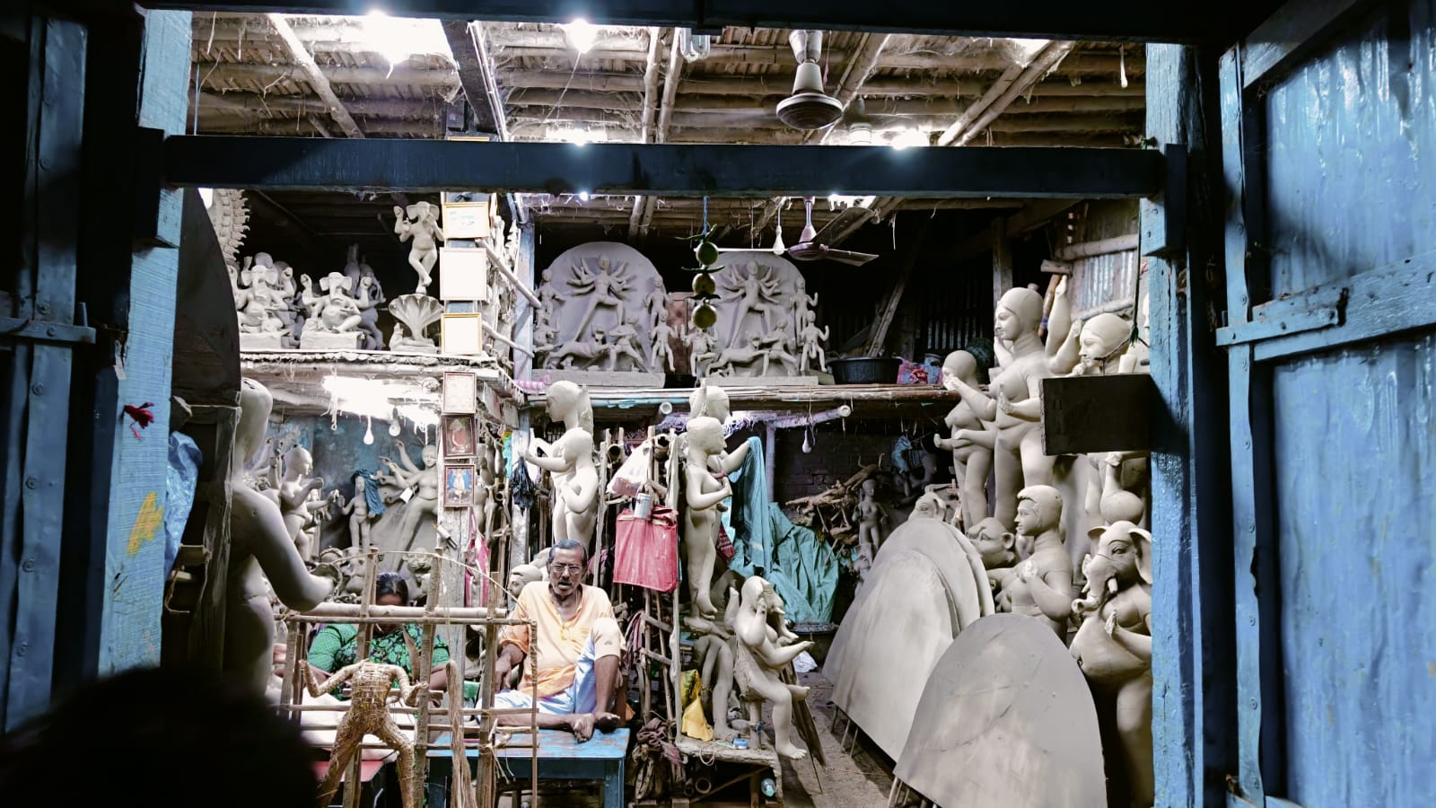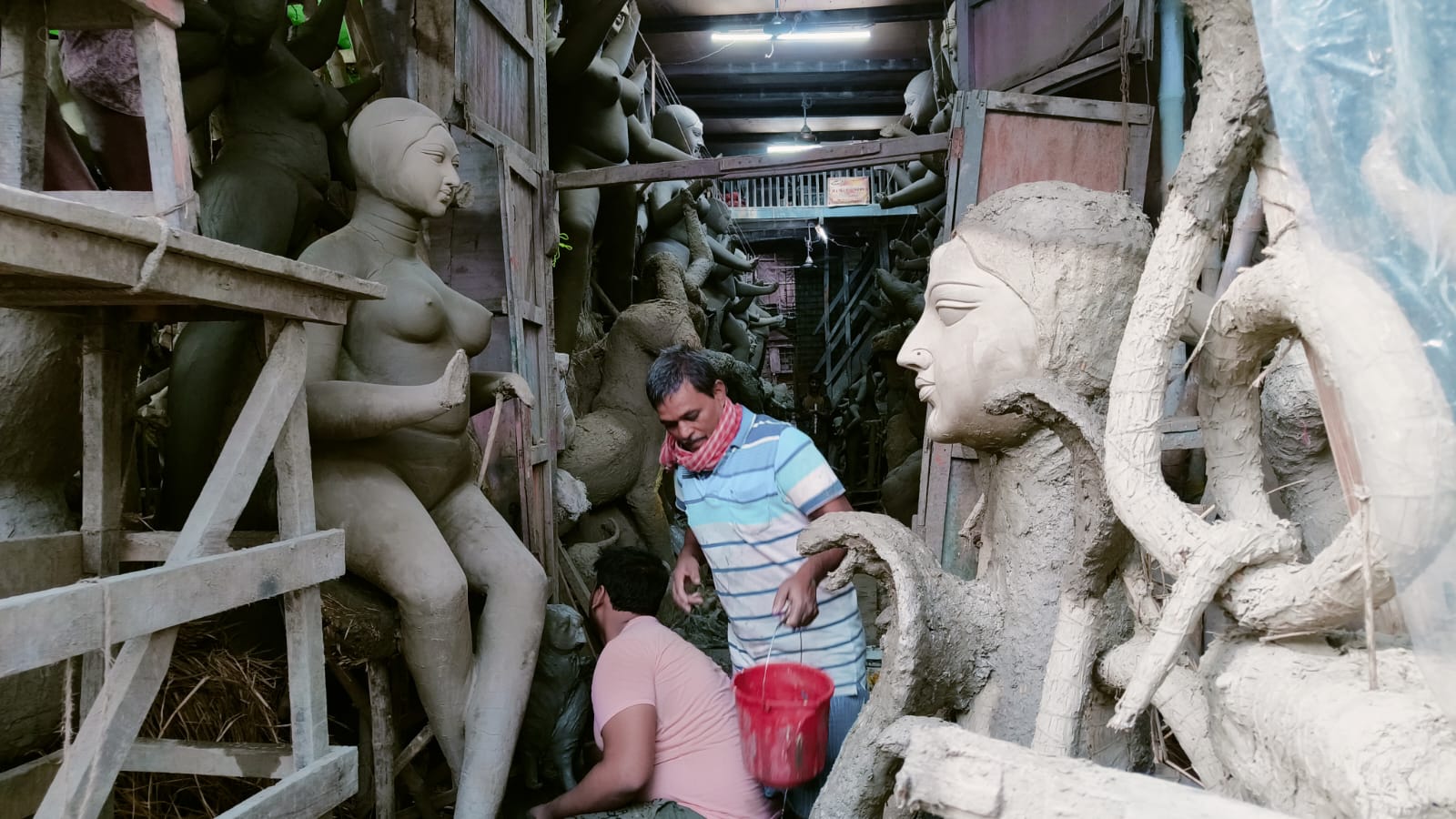 এই ষ্টুডিওতে সব বড় বড় দূর্গা প্রতিমা । আর সংখ্যায়ও তারা অগুনতি ।