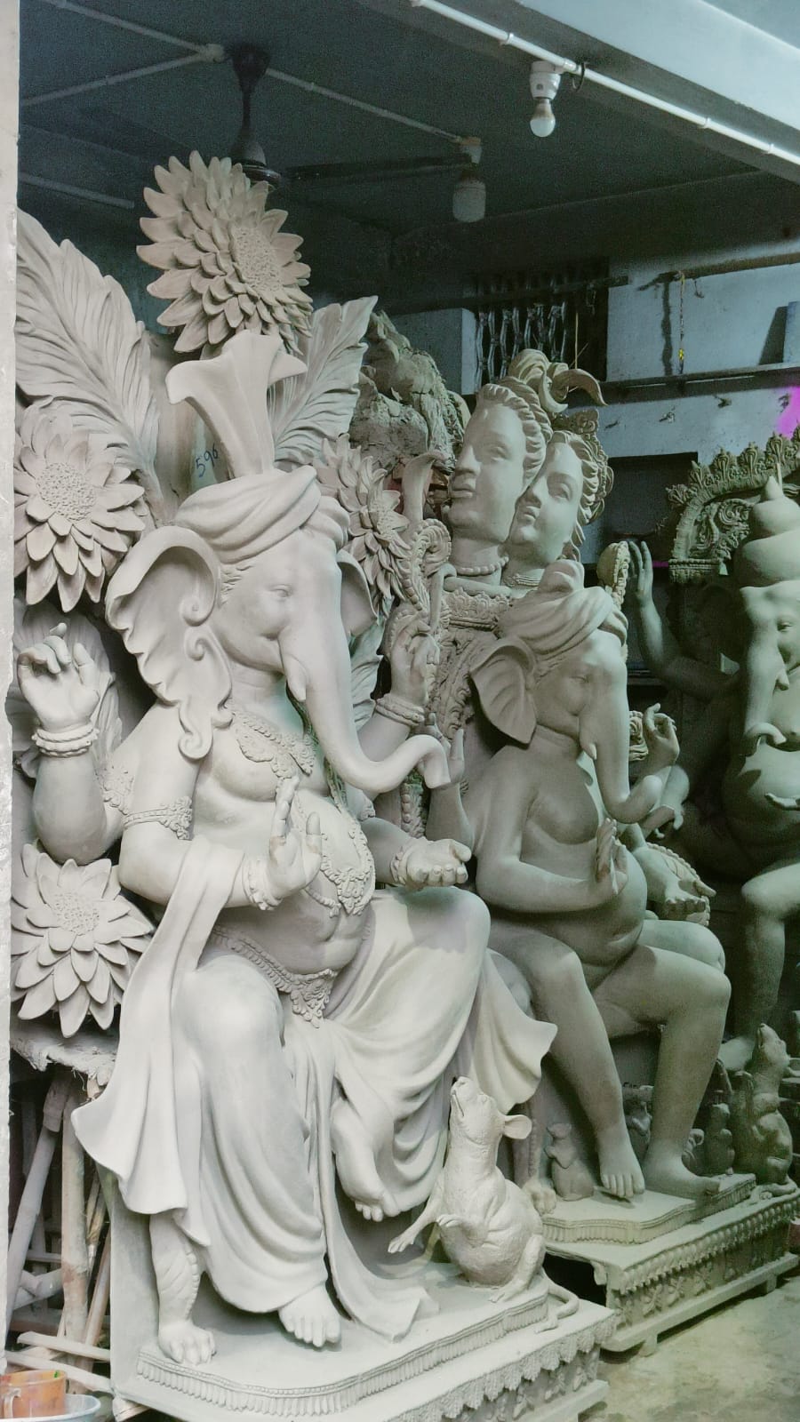 প্রথম ছবিতে দেখা যাচ্ছে সার সার দূর্গা মূর্তি । এই কারখানাটা বেশ বড়ো । আর দ্বিতীয় ছবিতে সার সার গণেশ মূর্তি । সামনের মাসেই গণেশ চতুর্থী । তাই বাজারে গণেশের চাহিদা এখন তুঙ্গে।