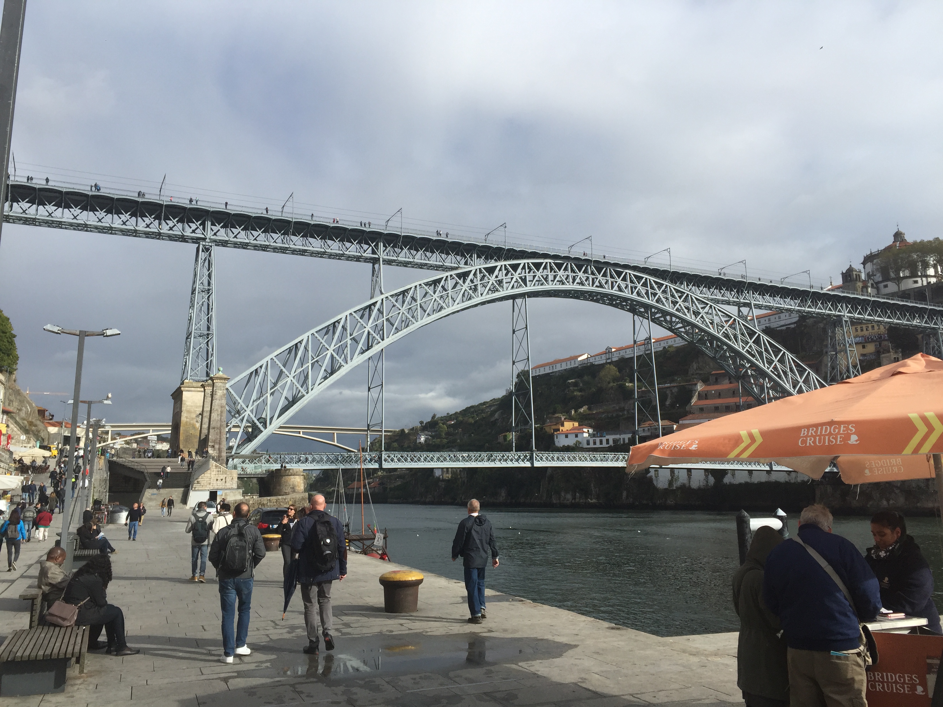 This is the Maria Pia bridge in Porto. It is also referred to as the Eiffel bridge since it was designed by Gustave Eiffel. There are pedestrian walks on both the lower and upper levels. I walked across the lower level many times, but never the upper level. I took this photo at the beginning of November 2018.