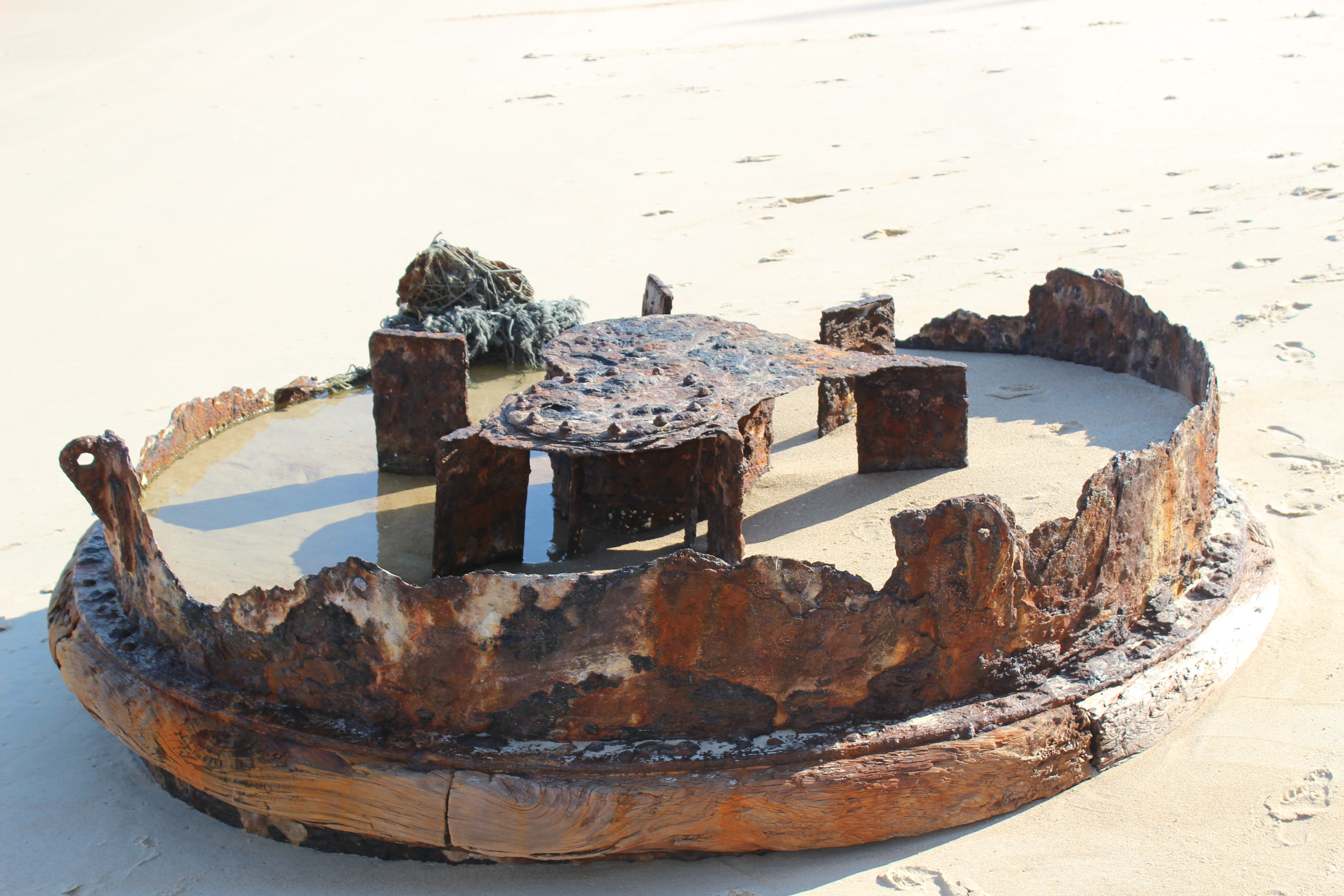 This one in particular seems to be far less eroded than the other two. Perhaps this isn't part of a ship at all? Perhaps these were built to access something bellow the surface of the beach?