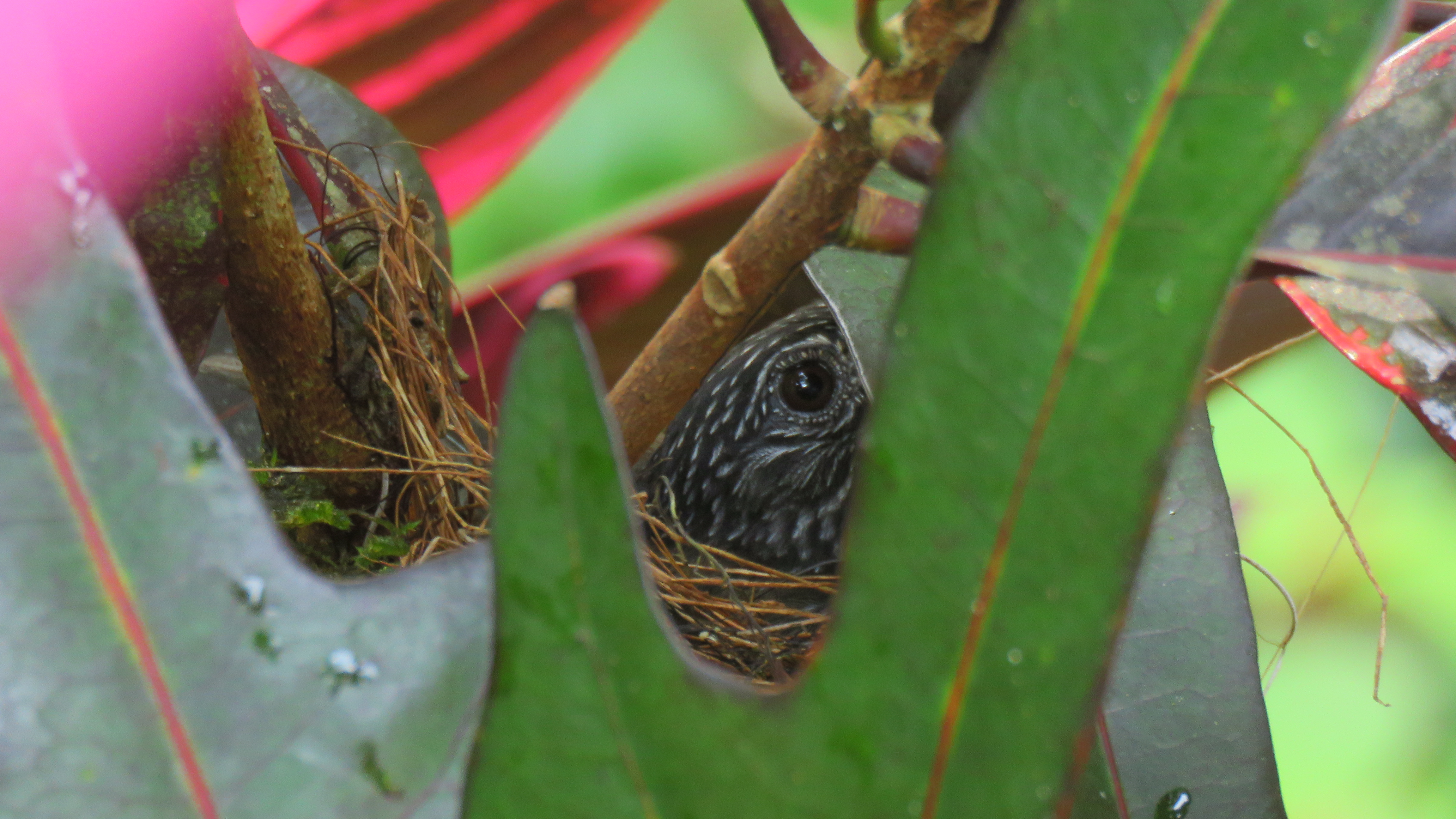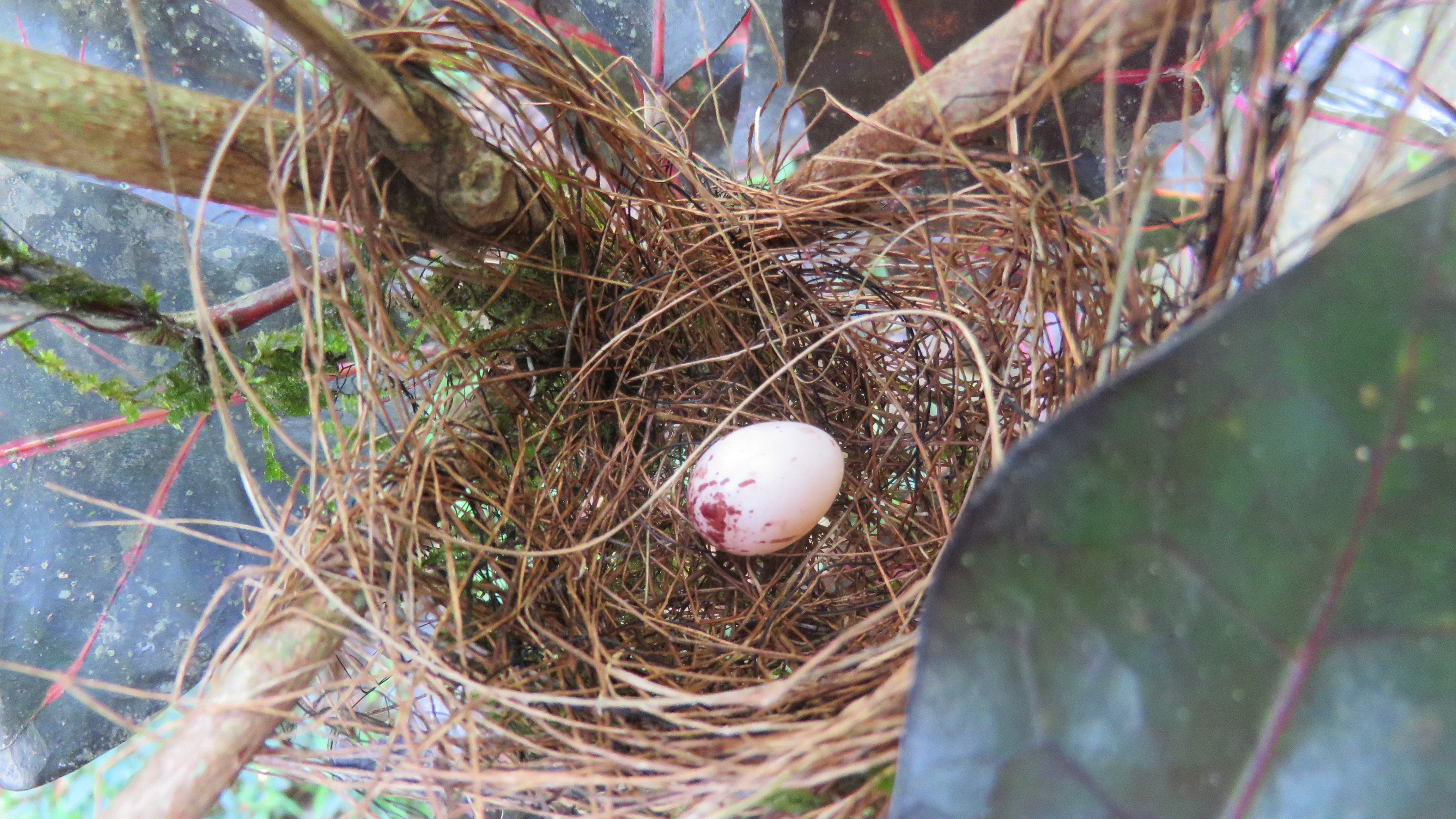 This is a glimpse of the mother bird sitting on the nest I recently discovered right on the edge of my garden path. It is hard not to disturb her as I walk past.