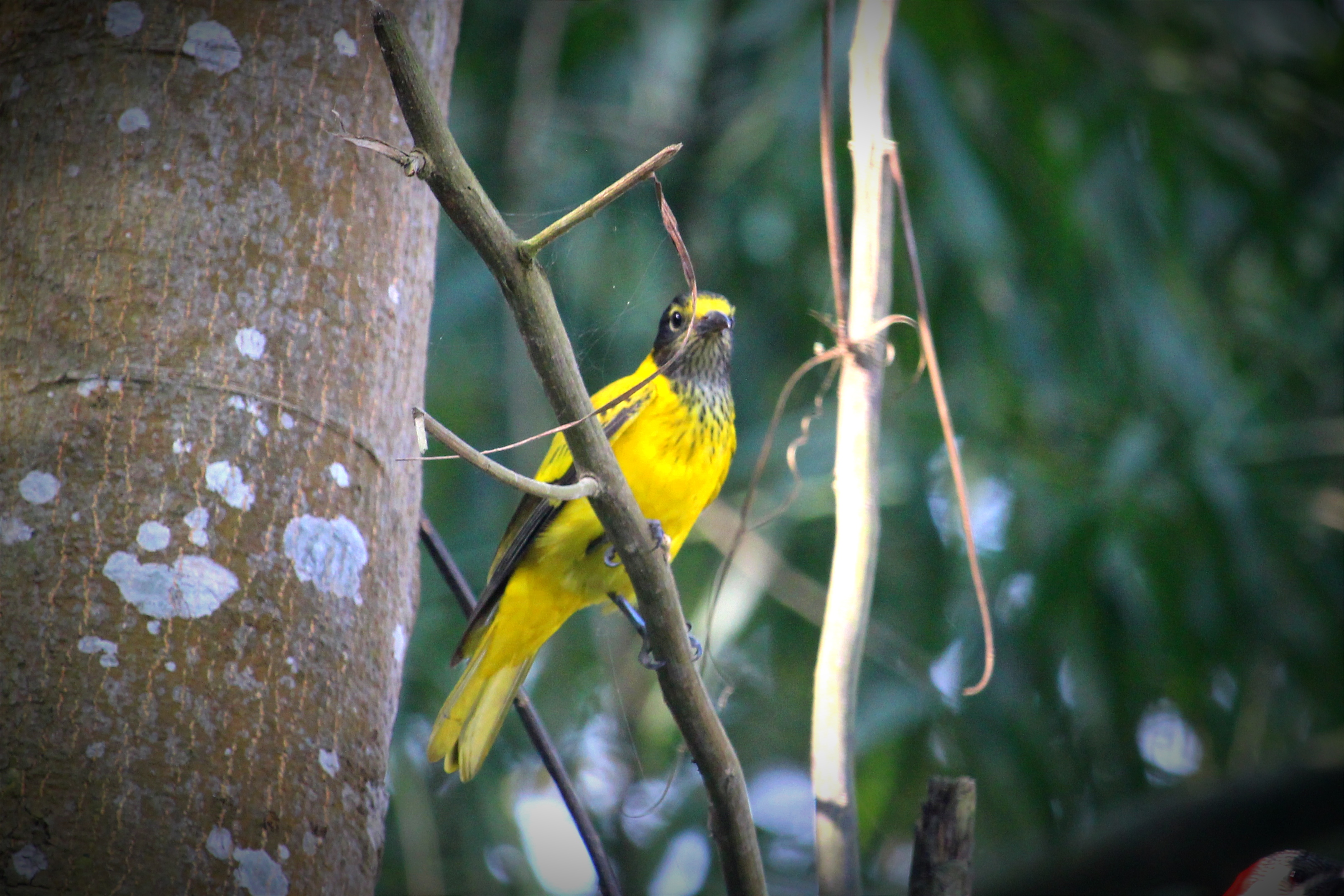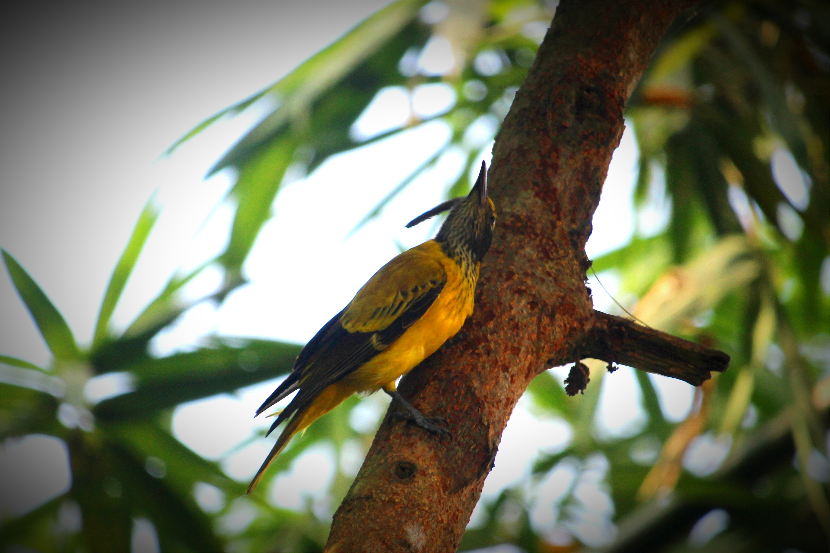 Hi friends.Hope that you guys all are well.Myself also good,Alhamdulillah.Greetings and welcome to my photography blog.I wanna exhibit some photos of a beautiful bird in this blog.Name of this bird is Black-hooded oriole.It is a species of bird in the Oriolidae family.It is a medium-sized bird with a distinctive black head and throat,yellow underparts,and olive-green upperparts.I were capturing photos in my village road that time i saw this bird inside a bamboo garden.The bird was not in a good position that't why i didn’t got close shots.By the way this bird looks so cute and lovely.