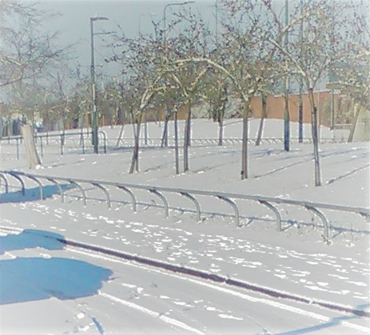Anyway as for the picture today I share one of the stick thin trees who have lost all their leaves due to the cold and while many call them dead trees that is not the case at all these trees continue very much alive. For me this is a very Christmas like picture as we can see the snow placed everywhere even on those stick thin trees the snow somehow manages to place itself on them. There's snow on the walls and on the bushes further down, you can also see footprints by and under the trees along with a trail of prints on the other side of the drive poles. The camera also nicely captured the frosty atmosphere probably thanks to that not so bright sky bringing even more snow.