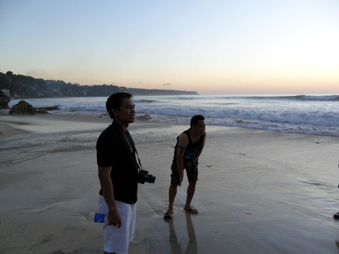 Dan akhirnya Kami (saya dan 2 teman saya ) turun juga ke pantai. Entah mengapa hari senja baru turun, mungkin waktu itu kami malu dengan turis turis atau ingin dipantai hanya ada kami saja haha