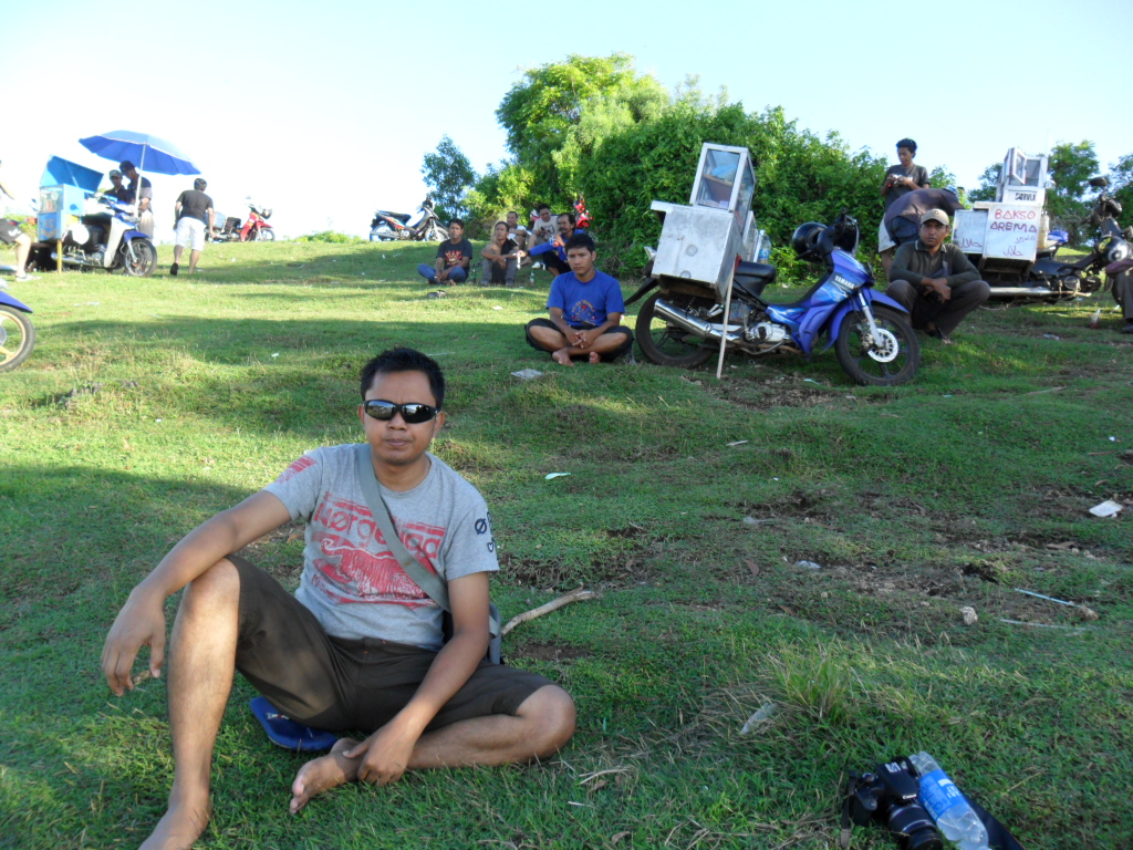 Foto diatas. Beberapa pedagang sedang menunggu pembeli sambil menikmati pemandangan pantai dan kerumunan orang (sambil berharap ada yang datang untuk membeli)