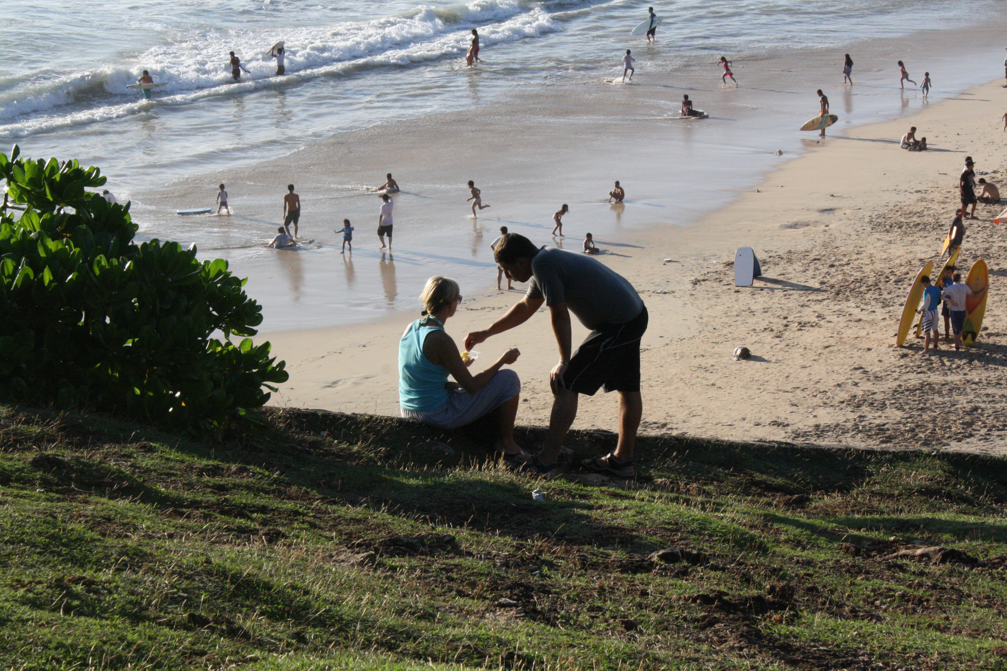Foto diatas adalah foto 2 orang turis asing yang sedang menikmati suasana pantai #Dreamland sambil menikmati cemilan/jajanan tradisional Bali.