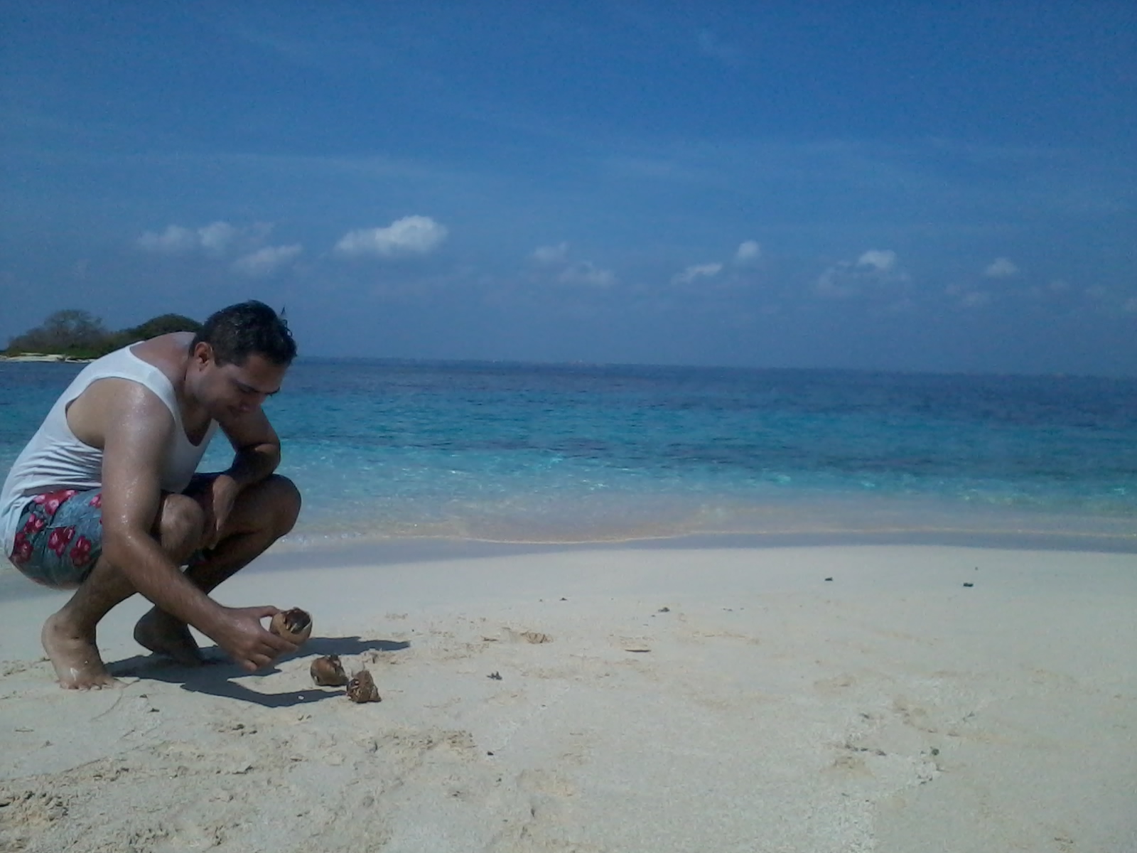 We boarded a boat with fishing friends who brought us to this place, this island whose name is "Cayo Sur" very close to the open sea, surrounds us the sound of birds and waves breaking gently on the shore.